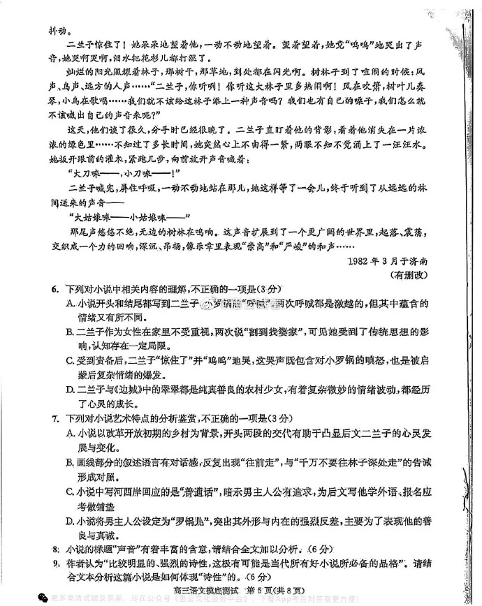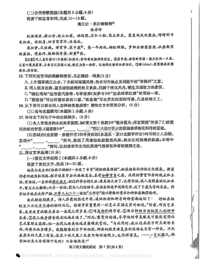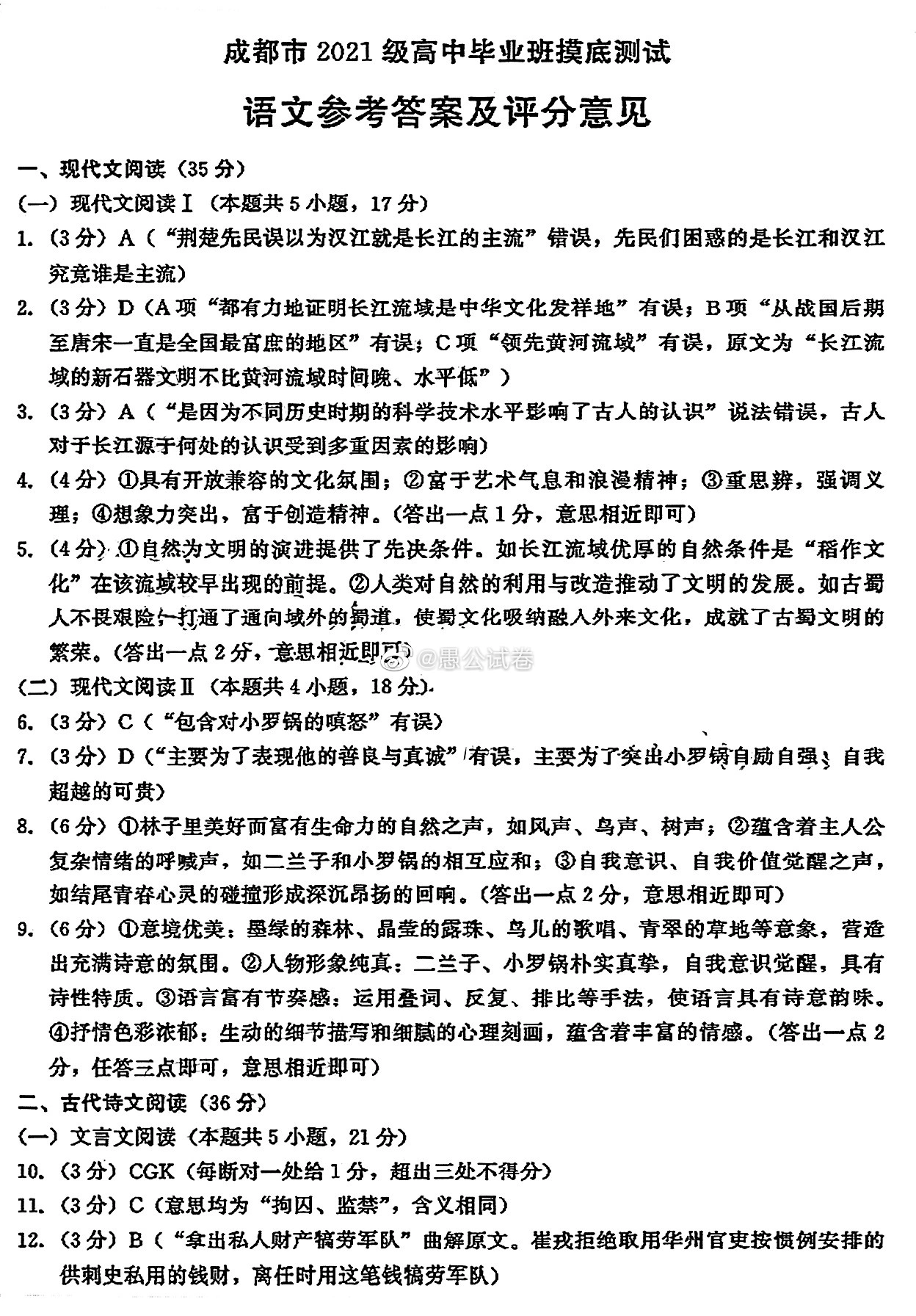 一、2024成都零诊语文试卷及答案解析