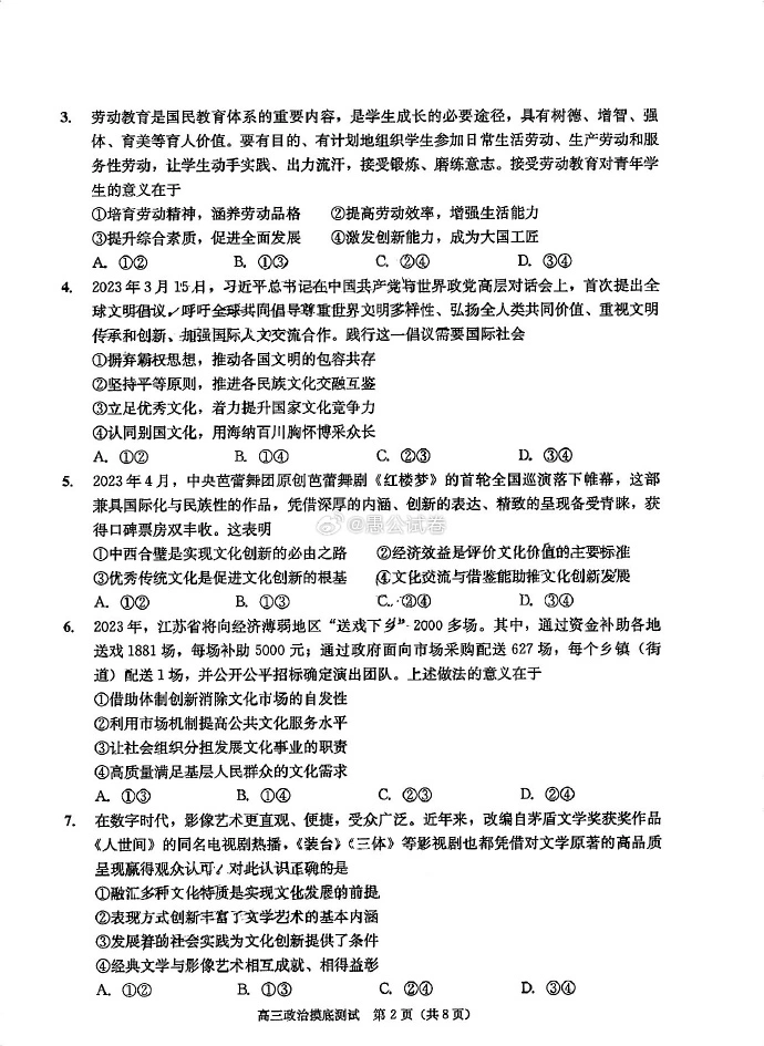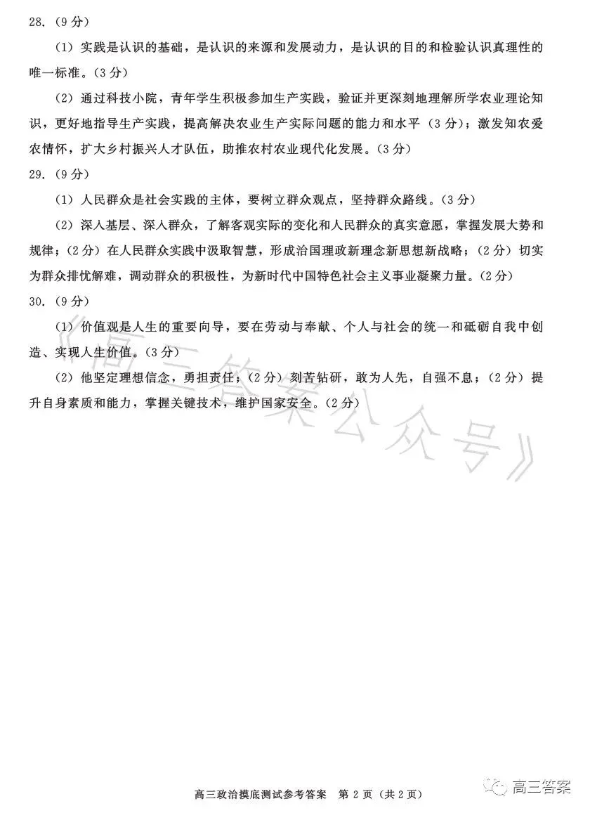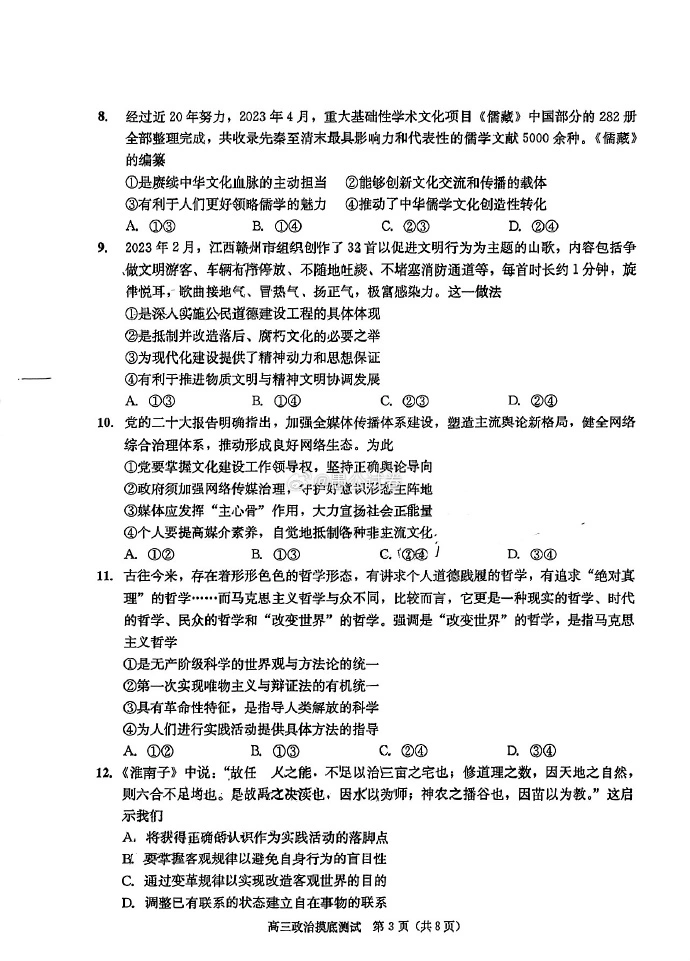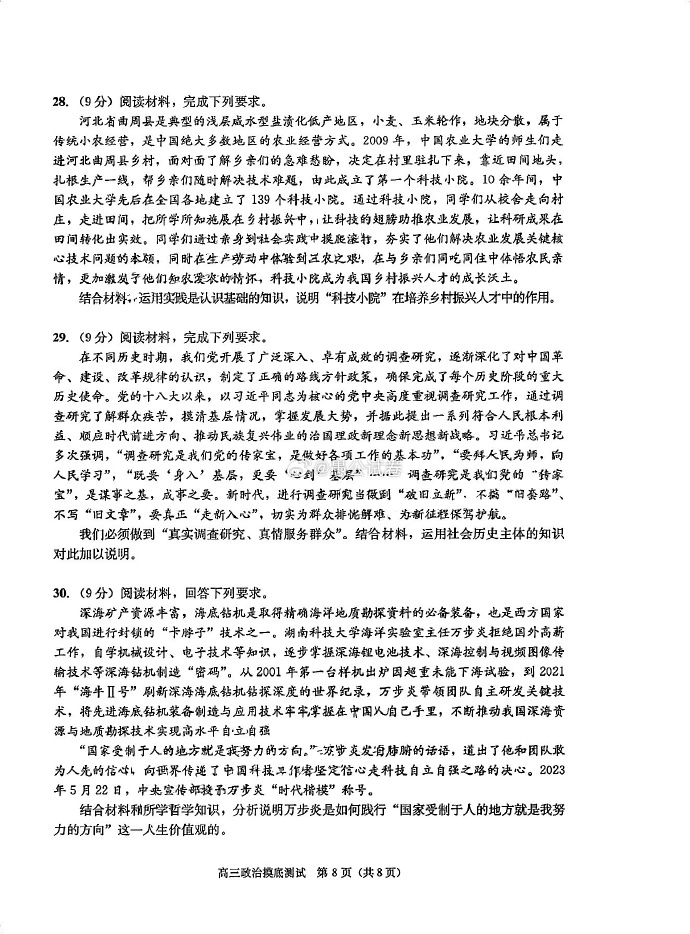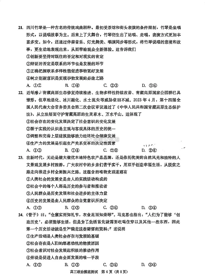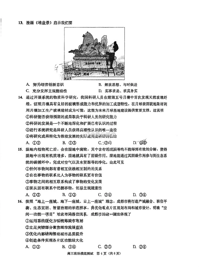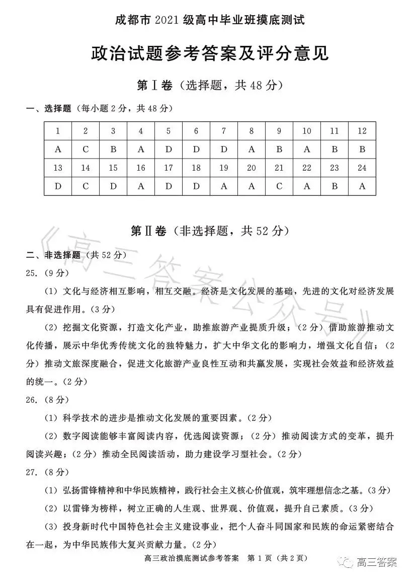 九、2024成都零诊政治试卷及答案解析
