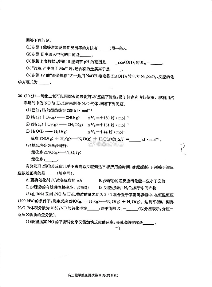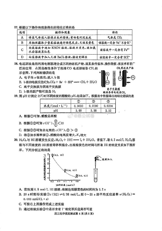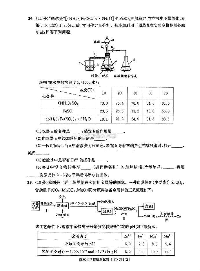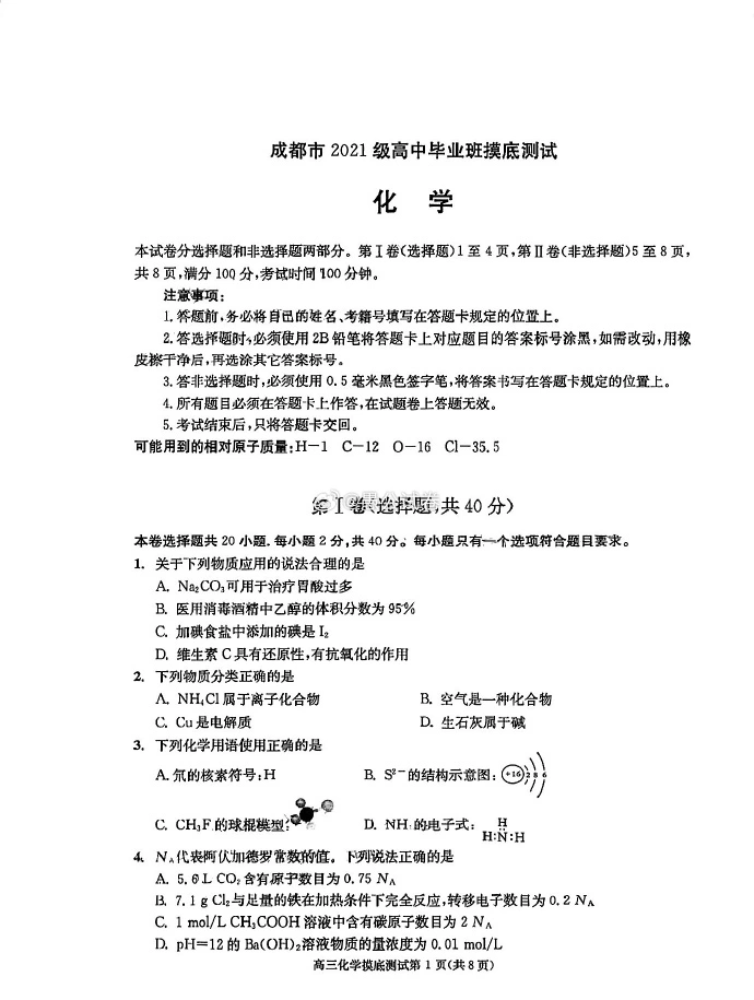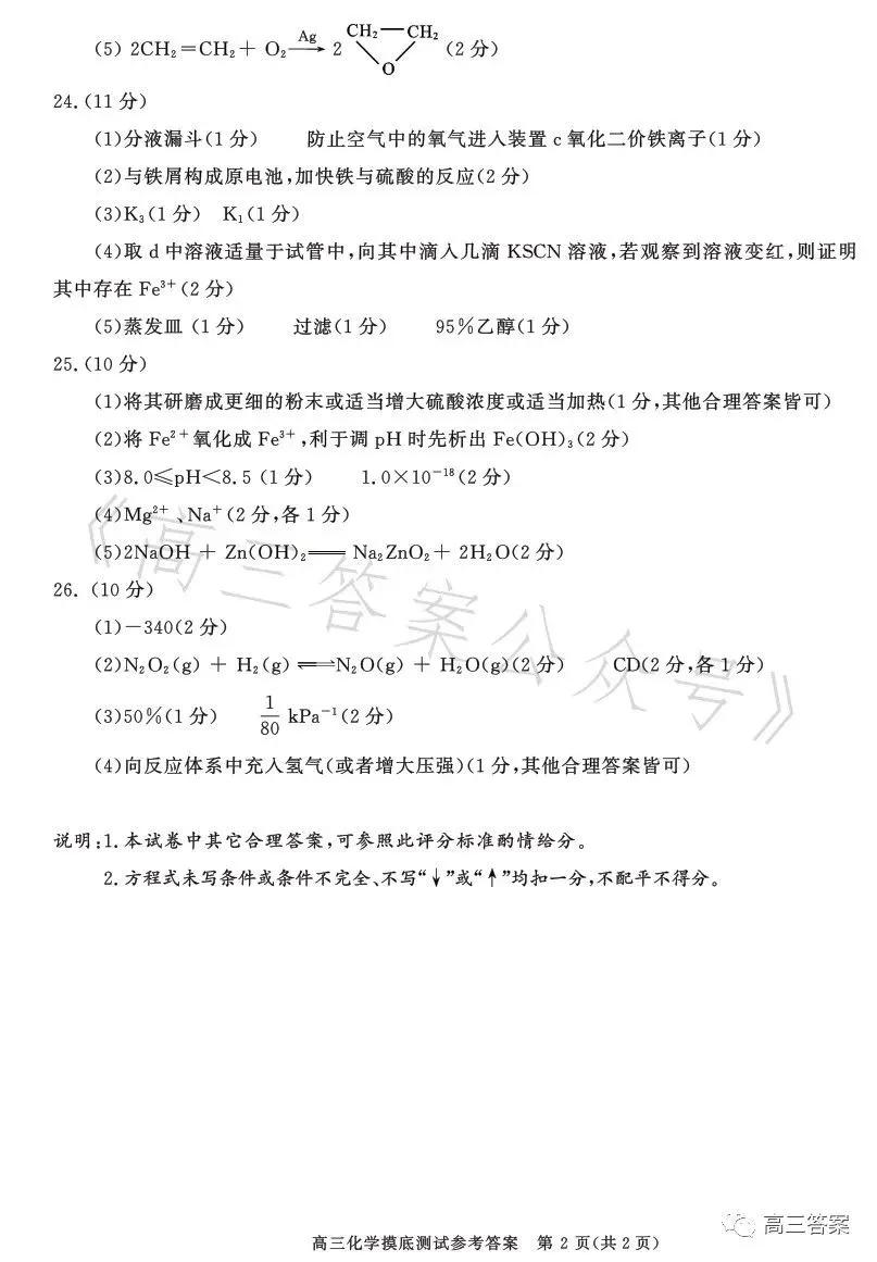 六、2024成都零诊化学试卷及答案解析