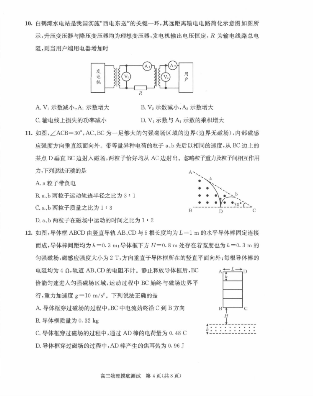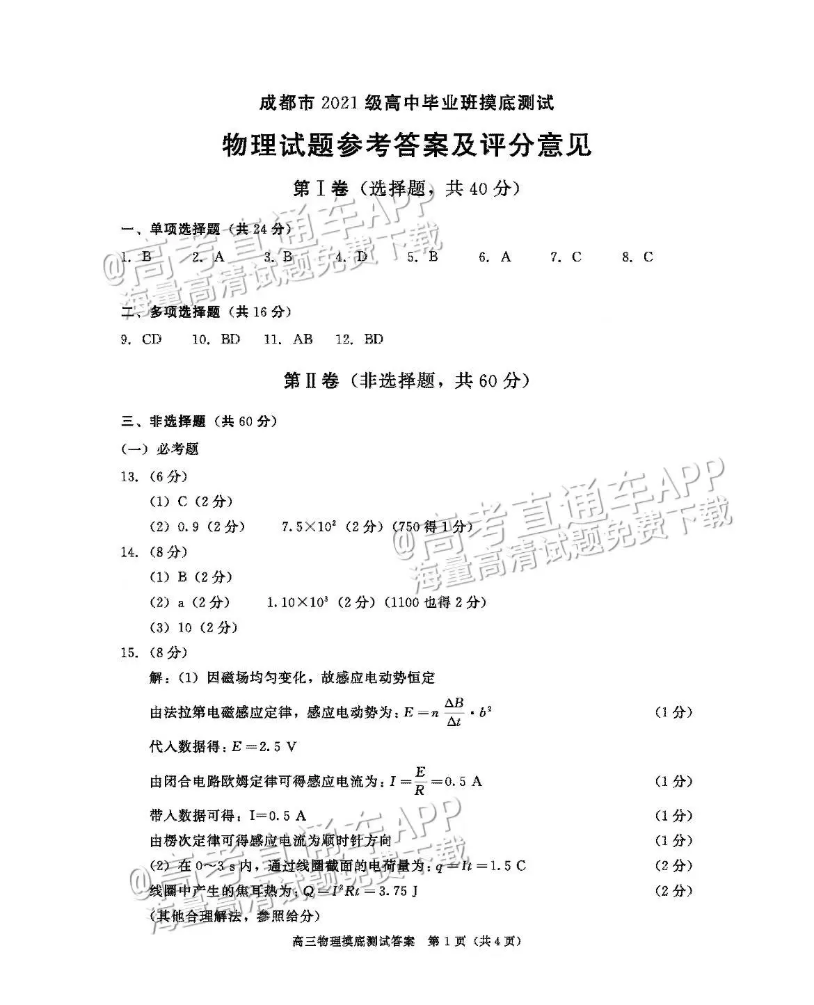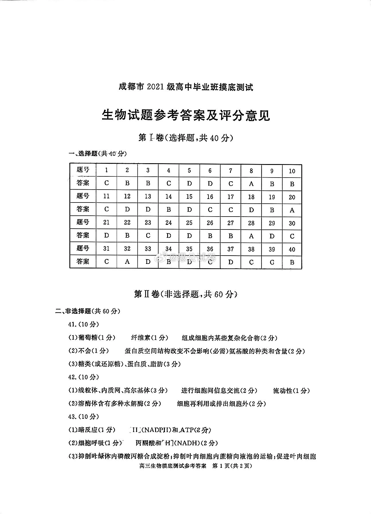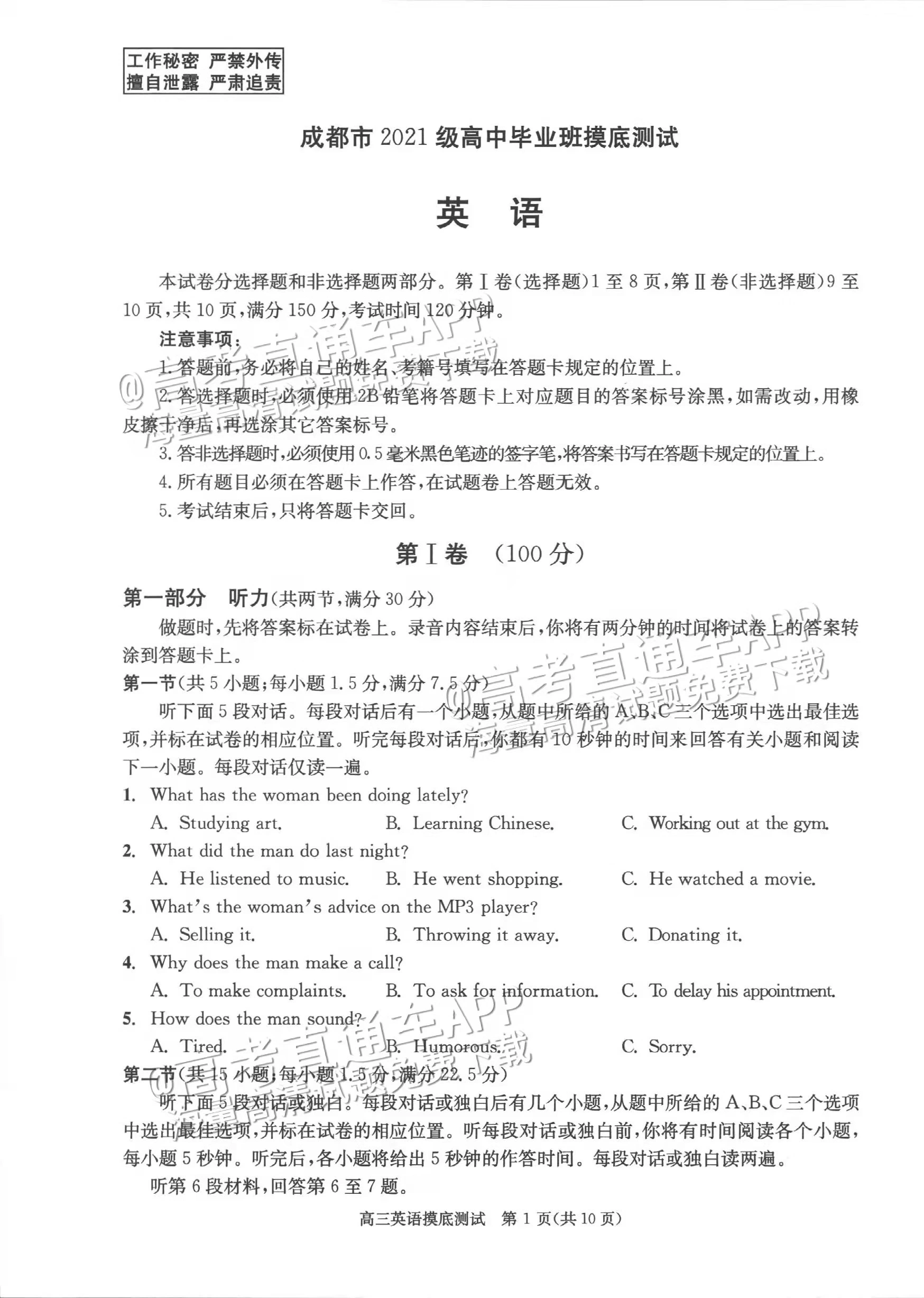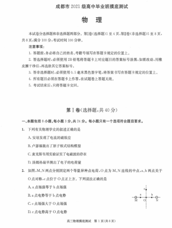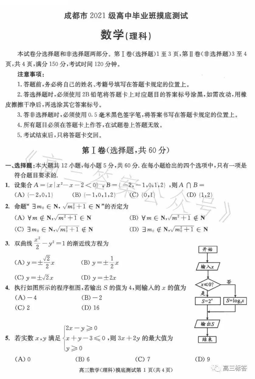 以下为2024成都零诊各科试题及参考答案汇总: