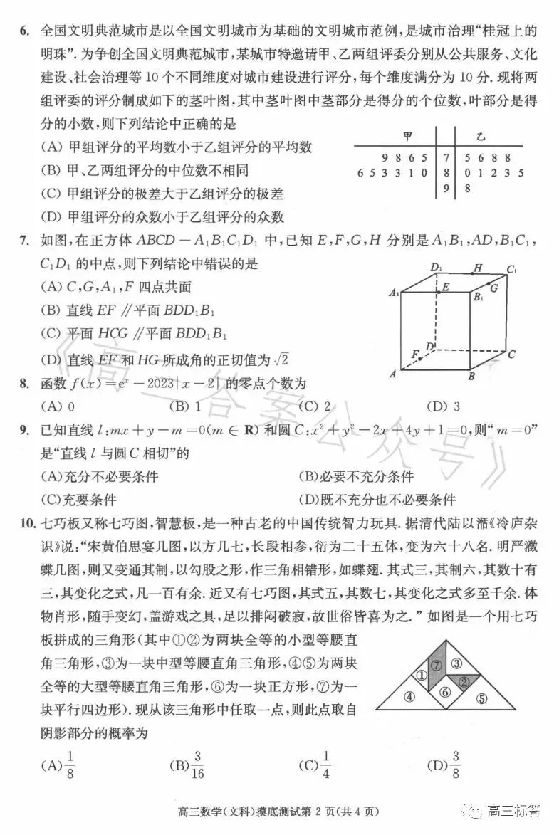 二、2024成都零诊文科数学试卷及答案解析