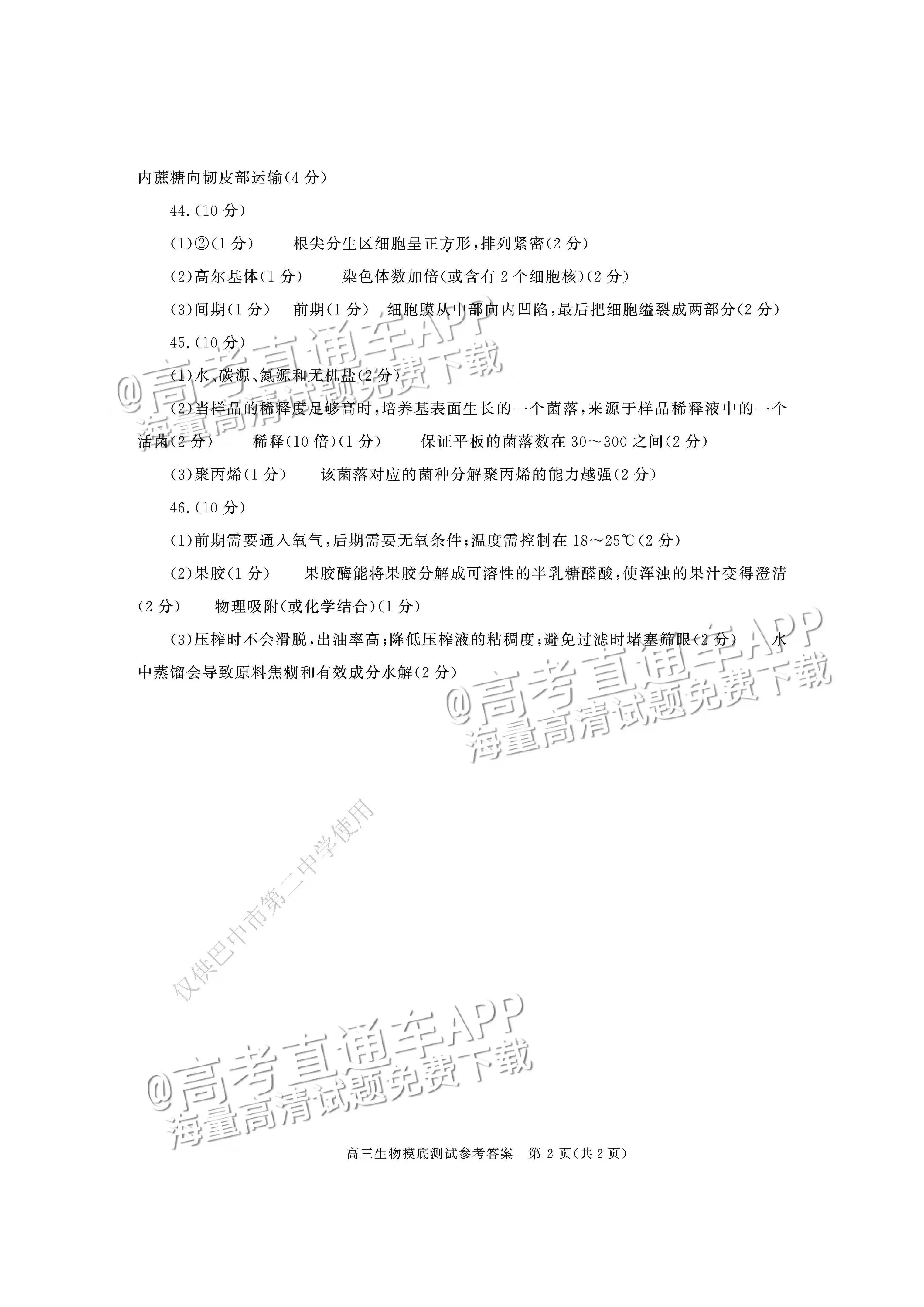 七、2024成都零诊生物试卷及答案解析