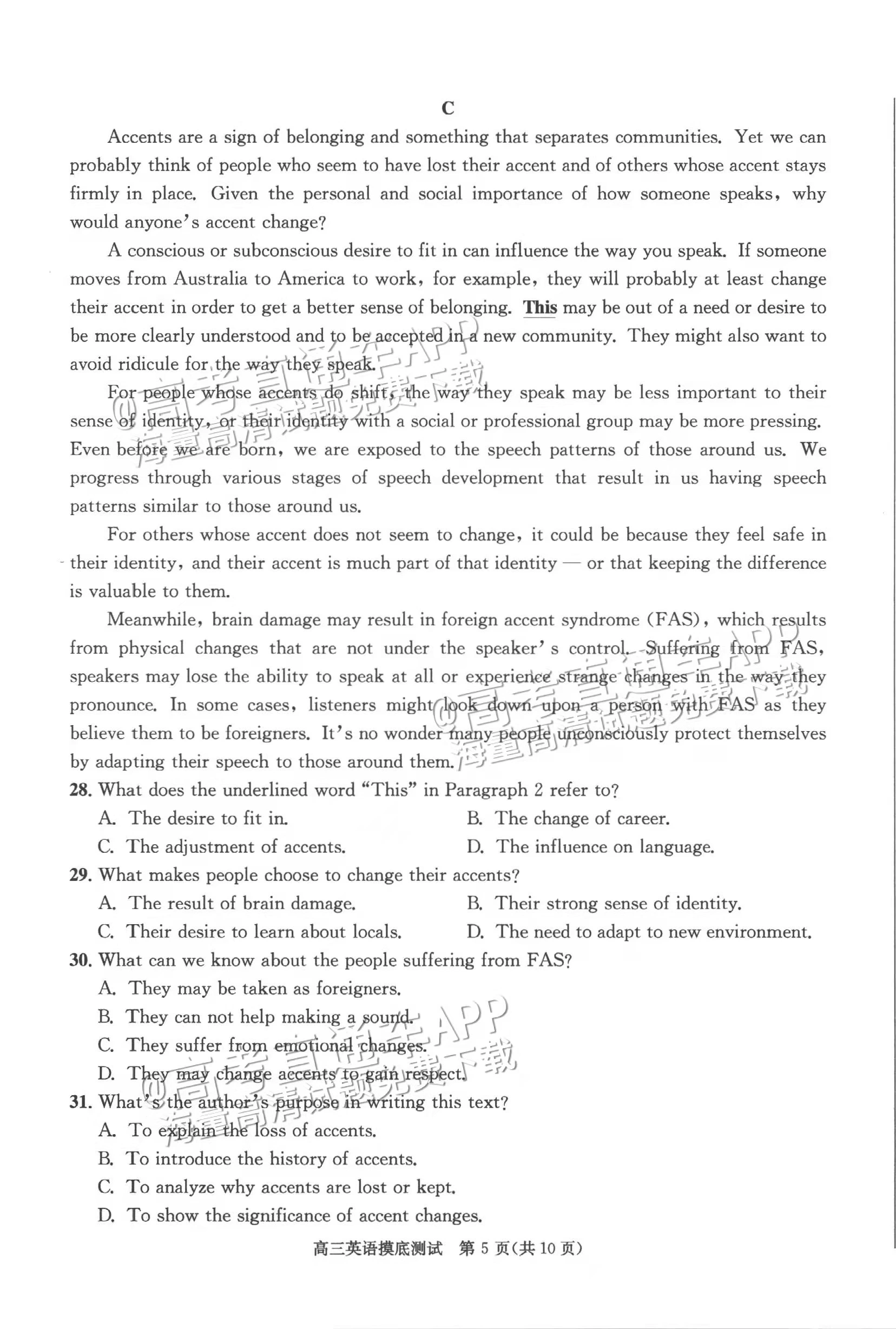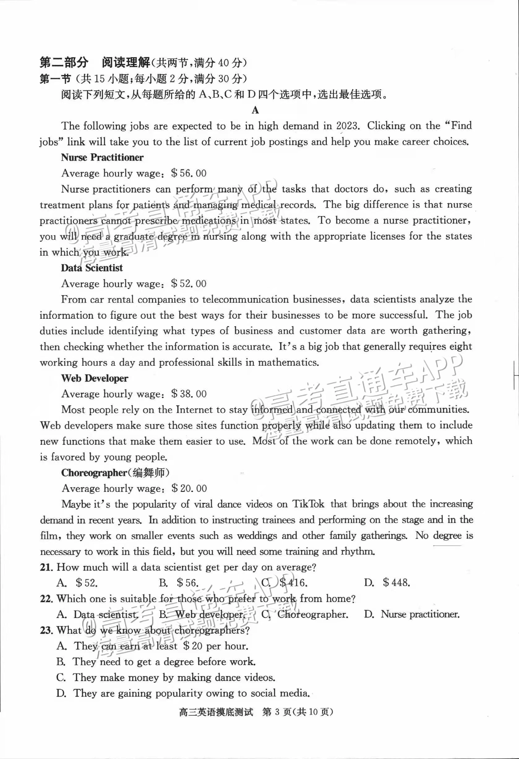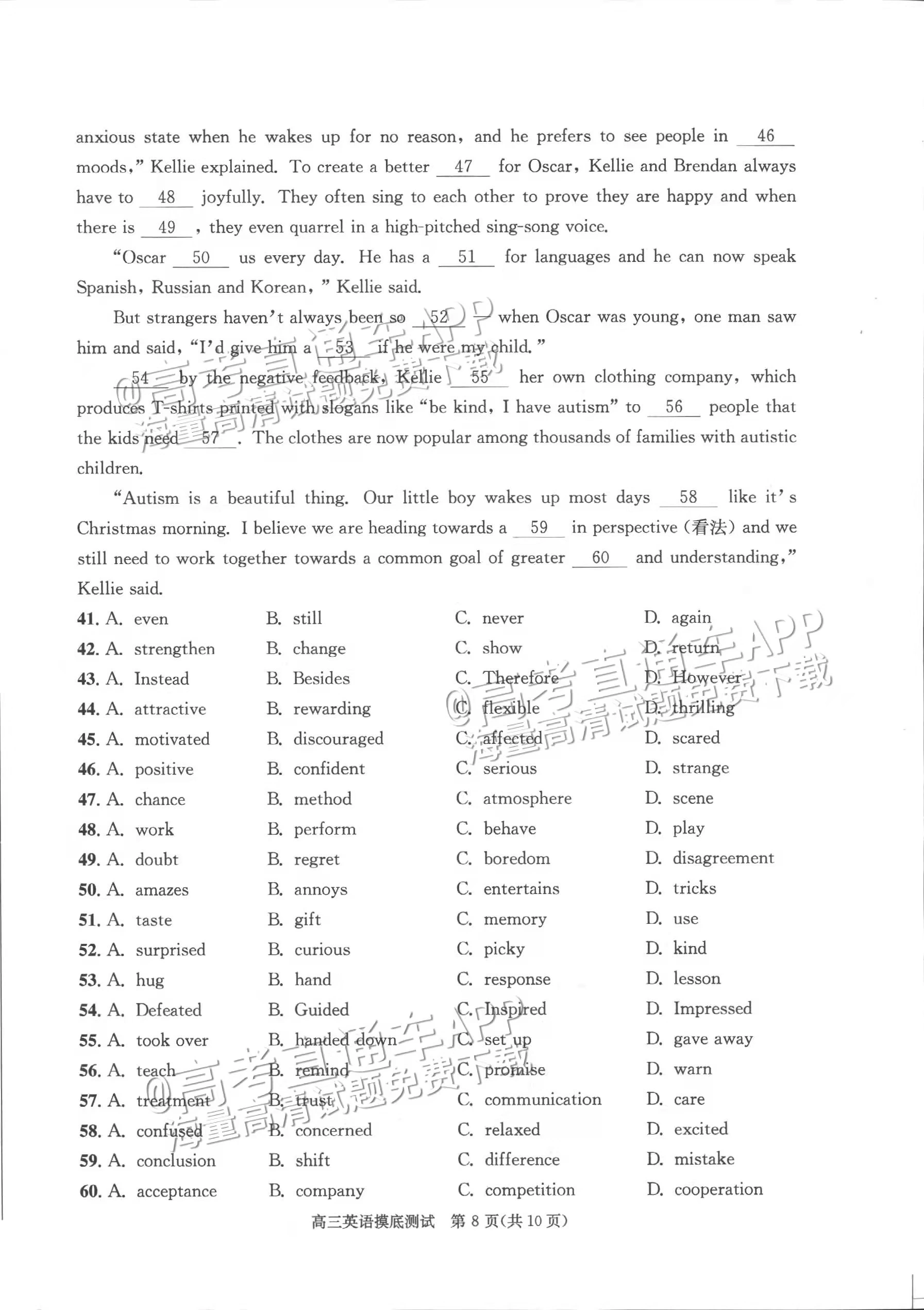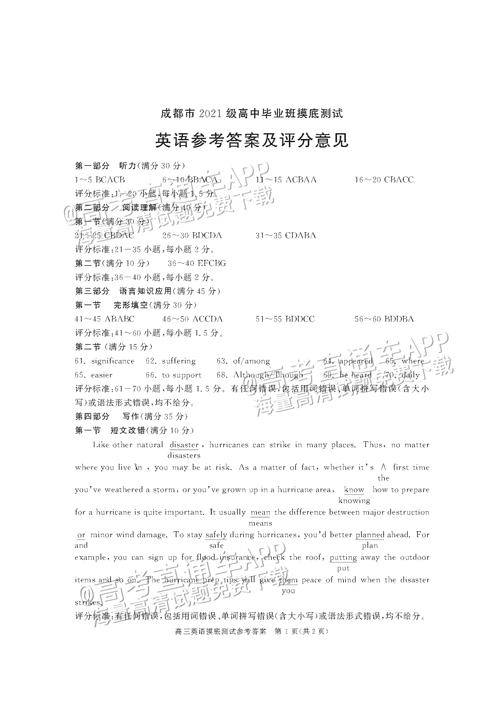 四、2024成都零诊英语试卷及答案解析
