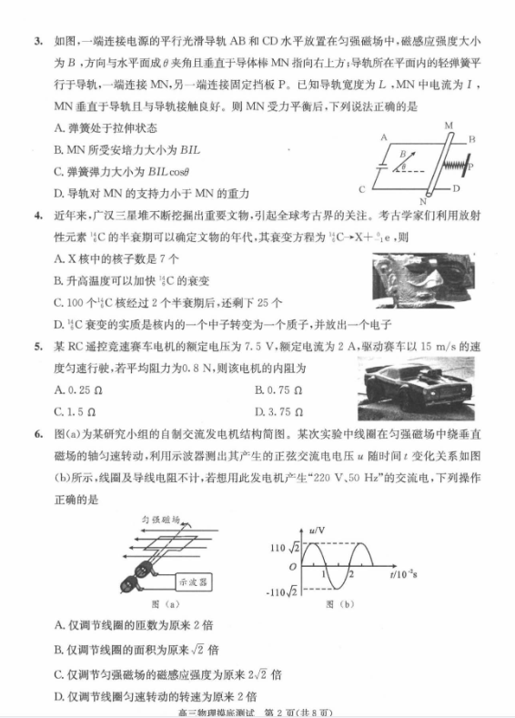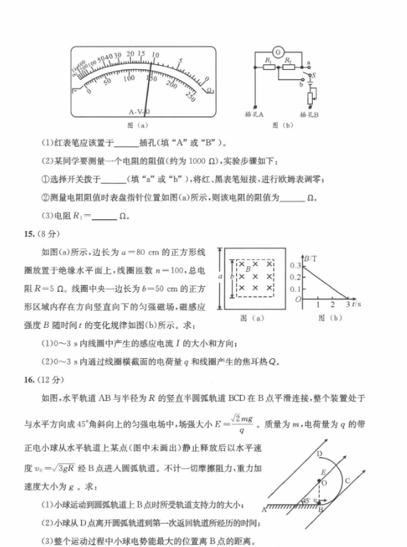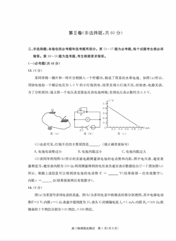 五、2024成都零诊物理试卷及答案解析