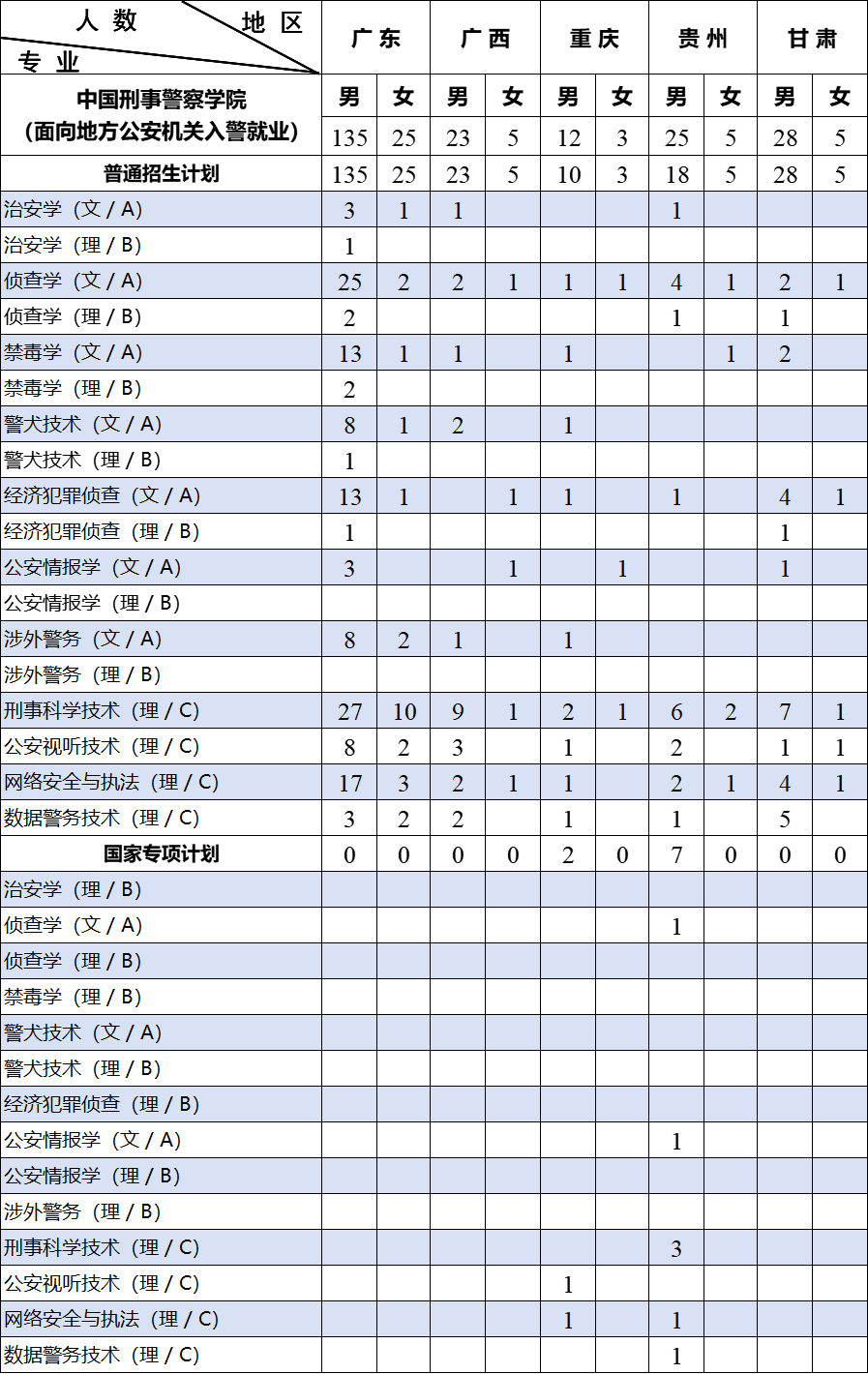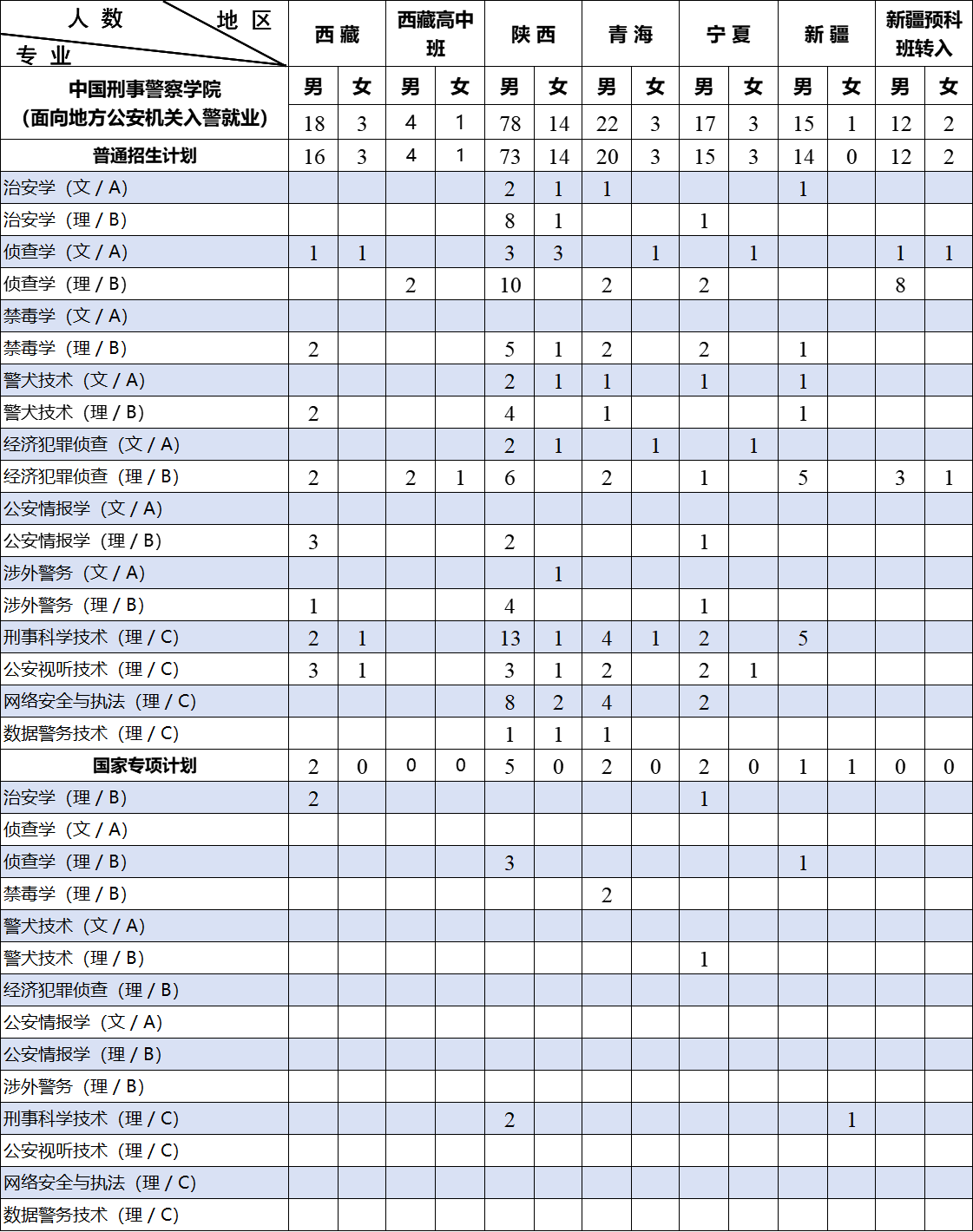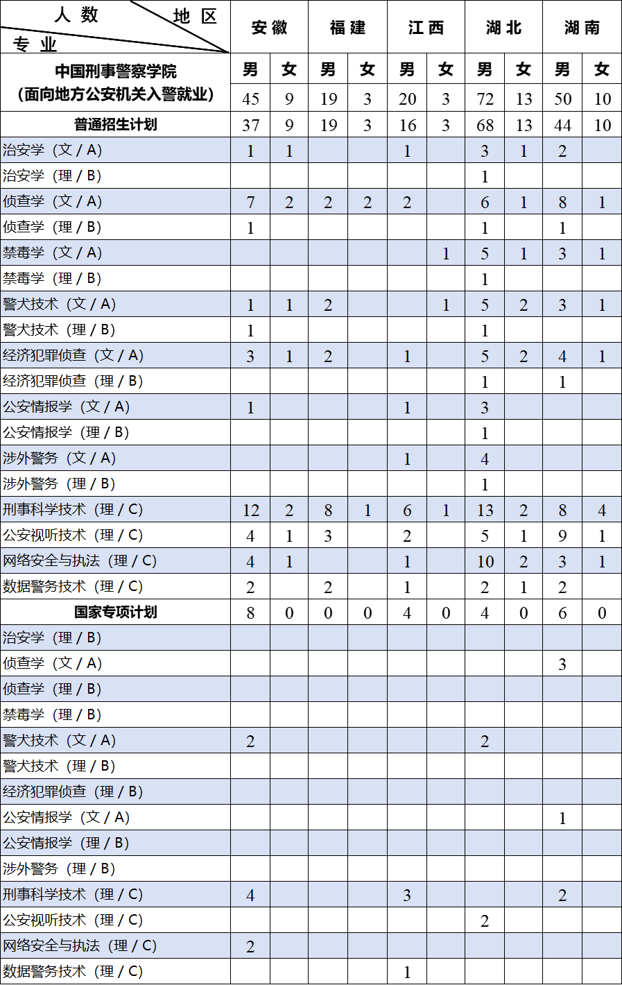 刑警学院贯彻公安院校公安专业人才招录培养制度改革要求,坚持按需招生、以用定招,根据各省(区、市)公安厅(局)、新疆生产建设兵团公安局和公安部铁路公安局以及国家移民管理局提出的公安专业人才培养需求,统筹编制分入警就业面向(面向地方公安机关、铁路公安机关、移民管理机构入警就业)、分省份、分科类(或选考科目要求)、分专业、分男女的公安专业招生计划。