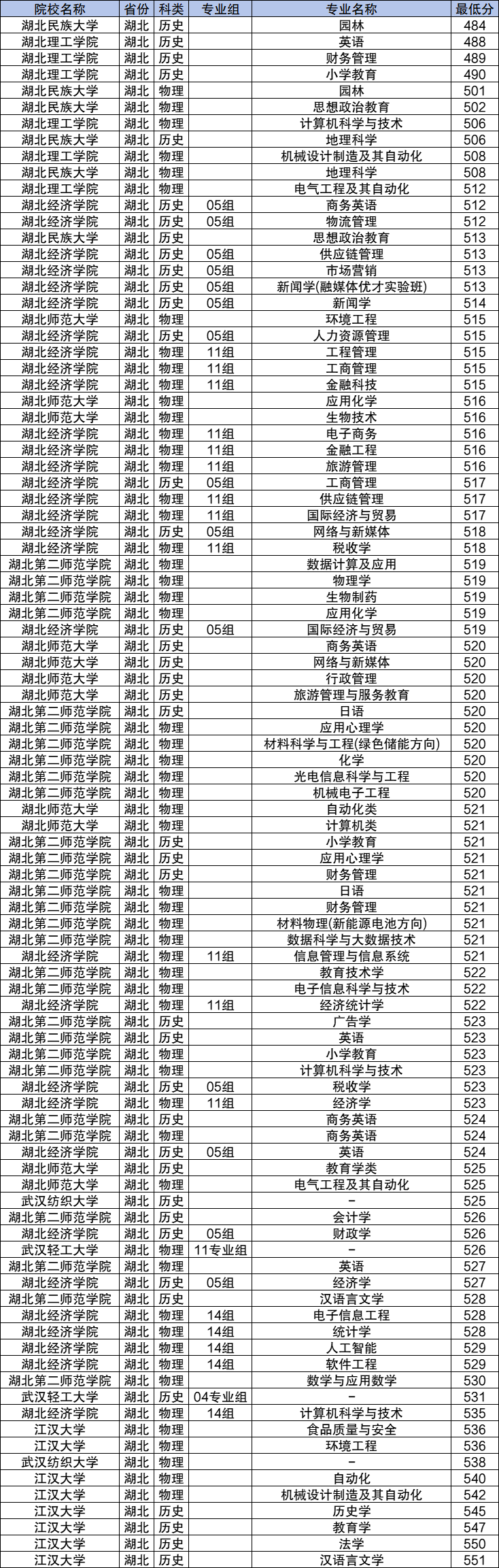 以湖北师范大学为例,物理类各个专业最低分数线如下: