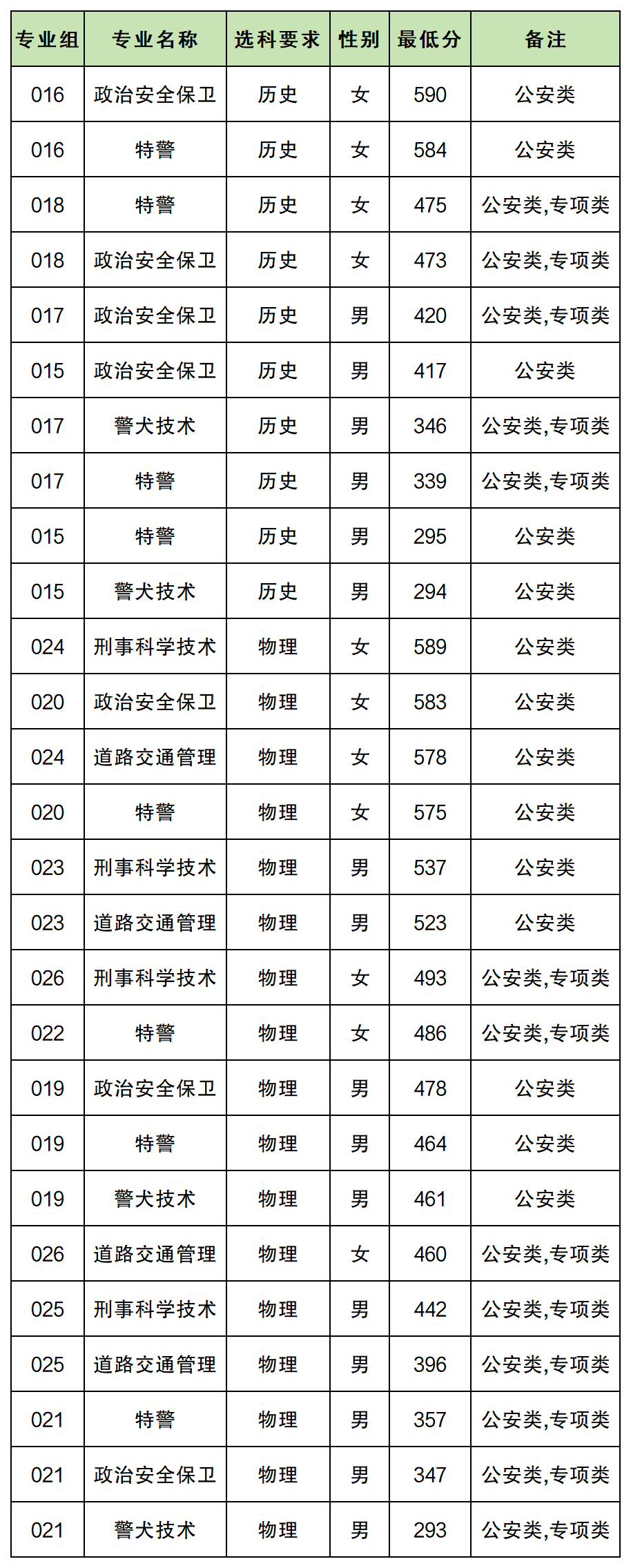 2.公安类专业性别限制