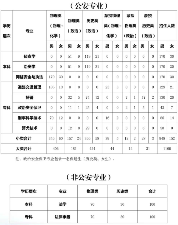 三、内蒙古警察学院2025招生计划