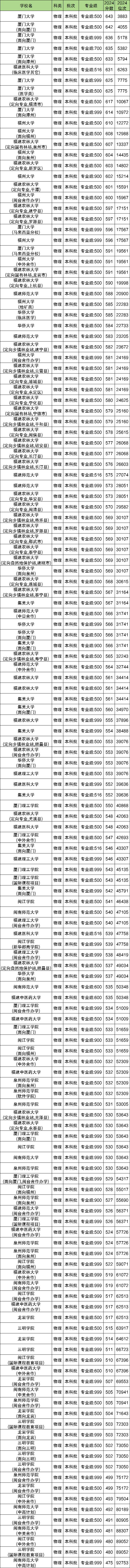 二、2024年福建前15名大学录取分数线
