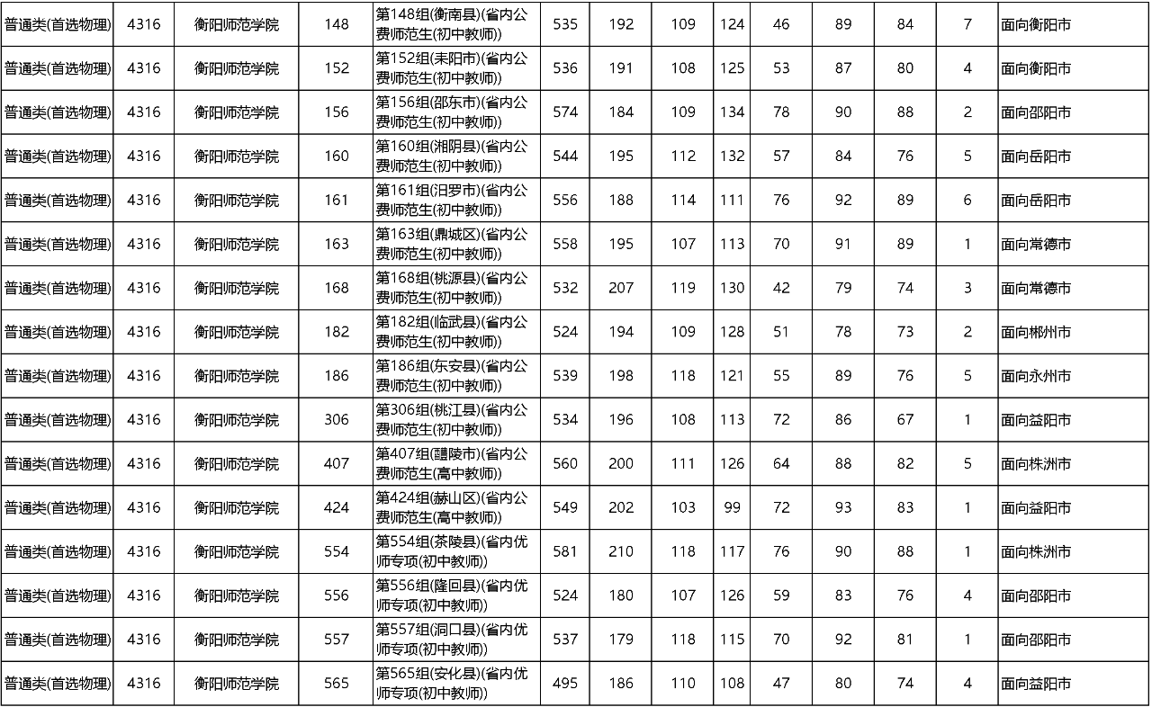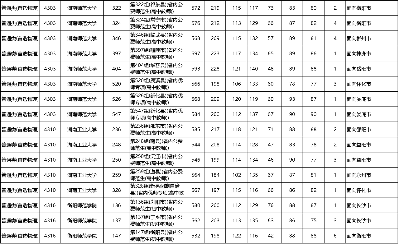 省属公费师范生收分最高的公费师范生院校为湖南科技大学第483组,最低投档线为558分;收分最低的公费师范生院校为衡阳师范学院第60组,最低投档线为509分。