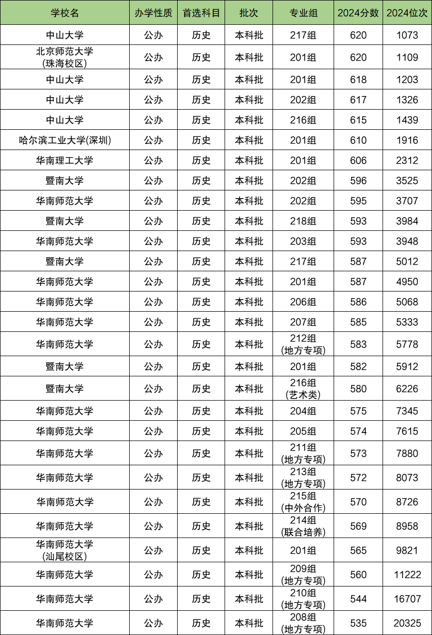 下文为2024年广东省211大学在广东历史类录取分数线和位次排名表,供大家参考: