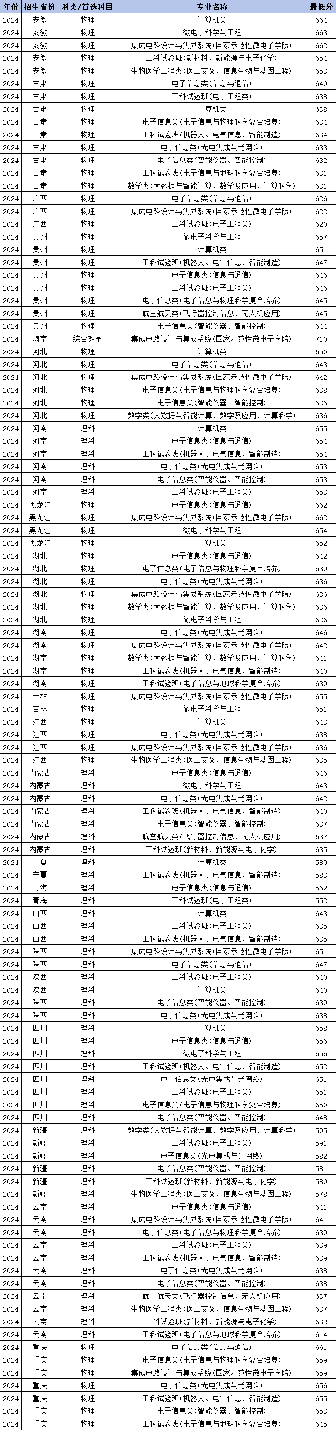 2024年电子科技大学国家专项计划在贵州录取最低分物理类644分,物理组收分最低的专业为电子信息类(智能仪器、智能控制)。