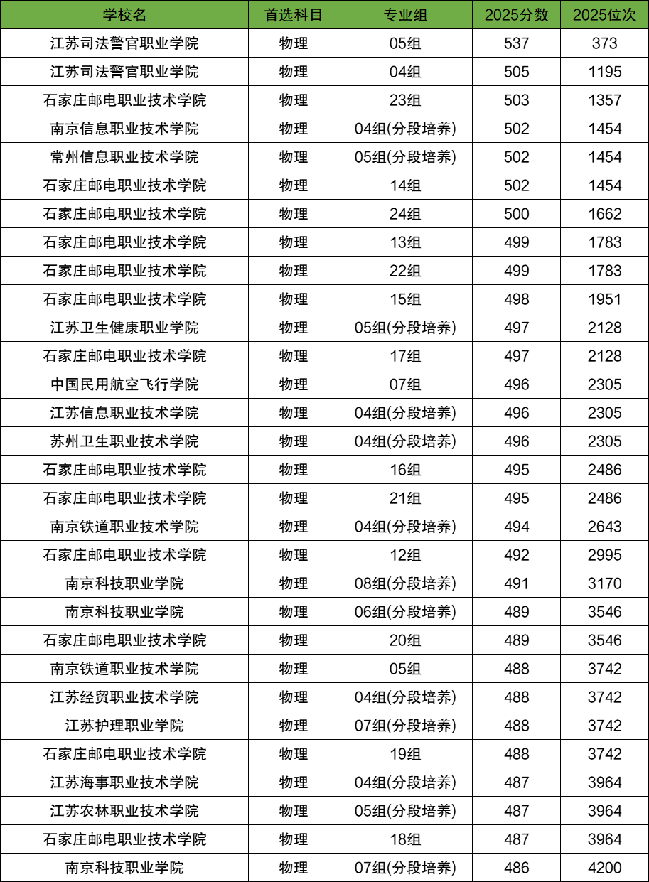 2025年江苏省物理科目类专科高校录取分数线一览表(前30强):
