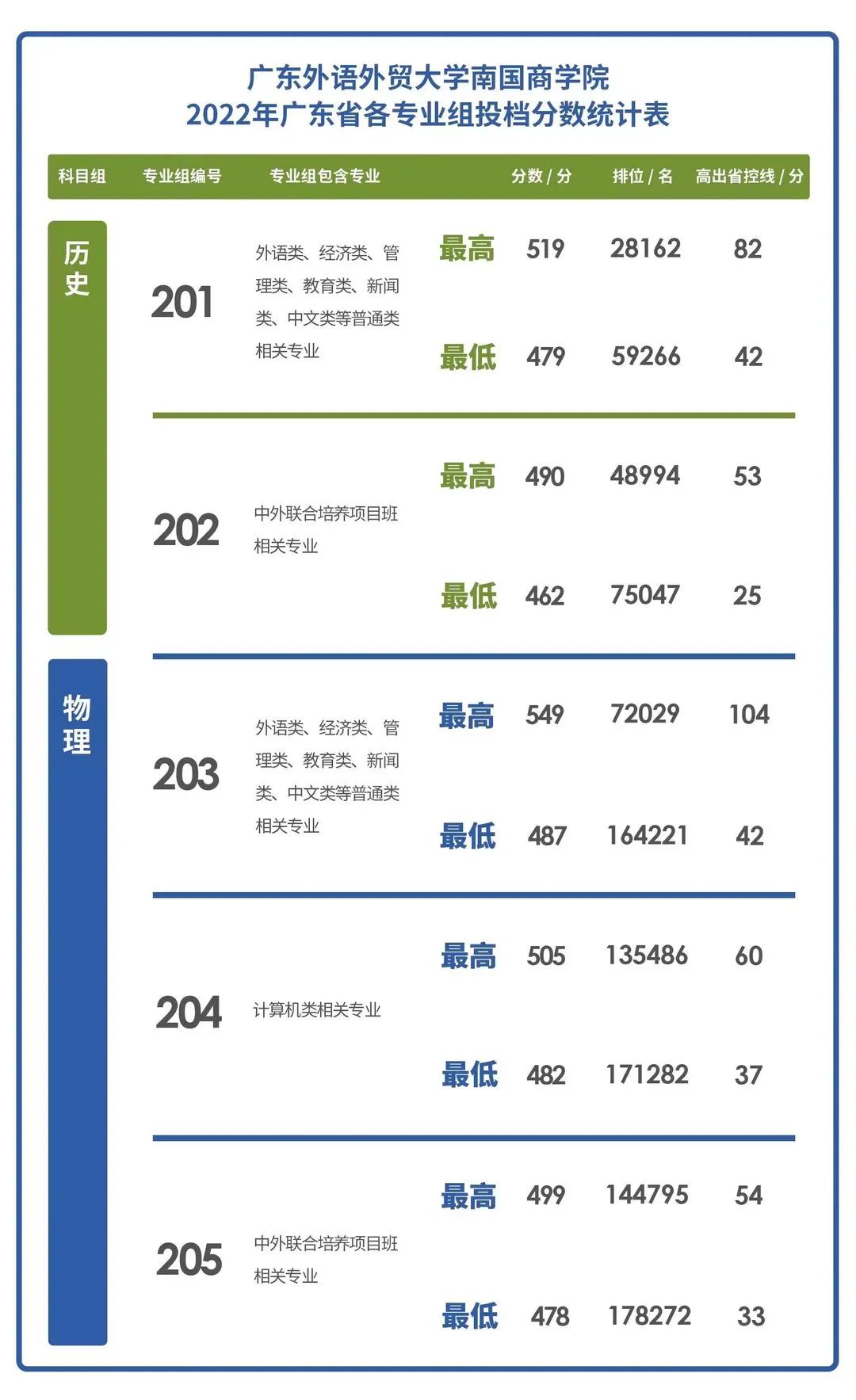 2022年广东普通历史类共设置11个专业组,投档分最高的专业组为202组,该组最低排位为2917位。