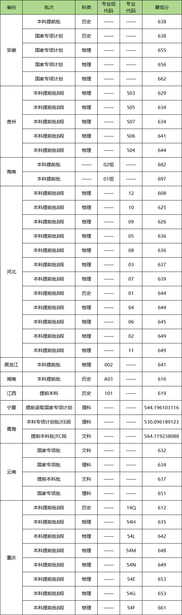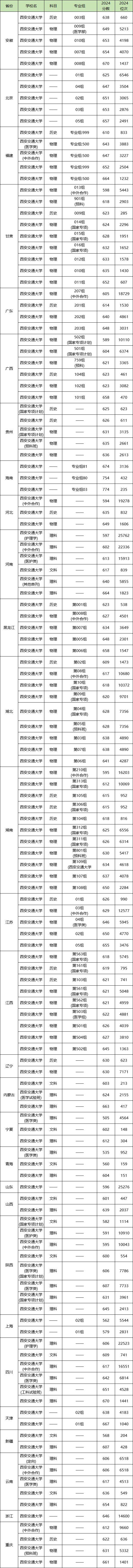2024年西安交通大学在各地区本科提前批的录取分数线如下: