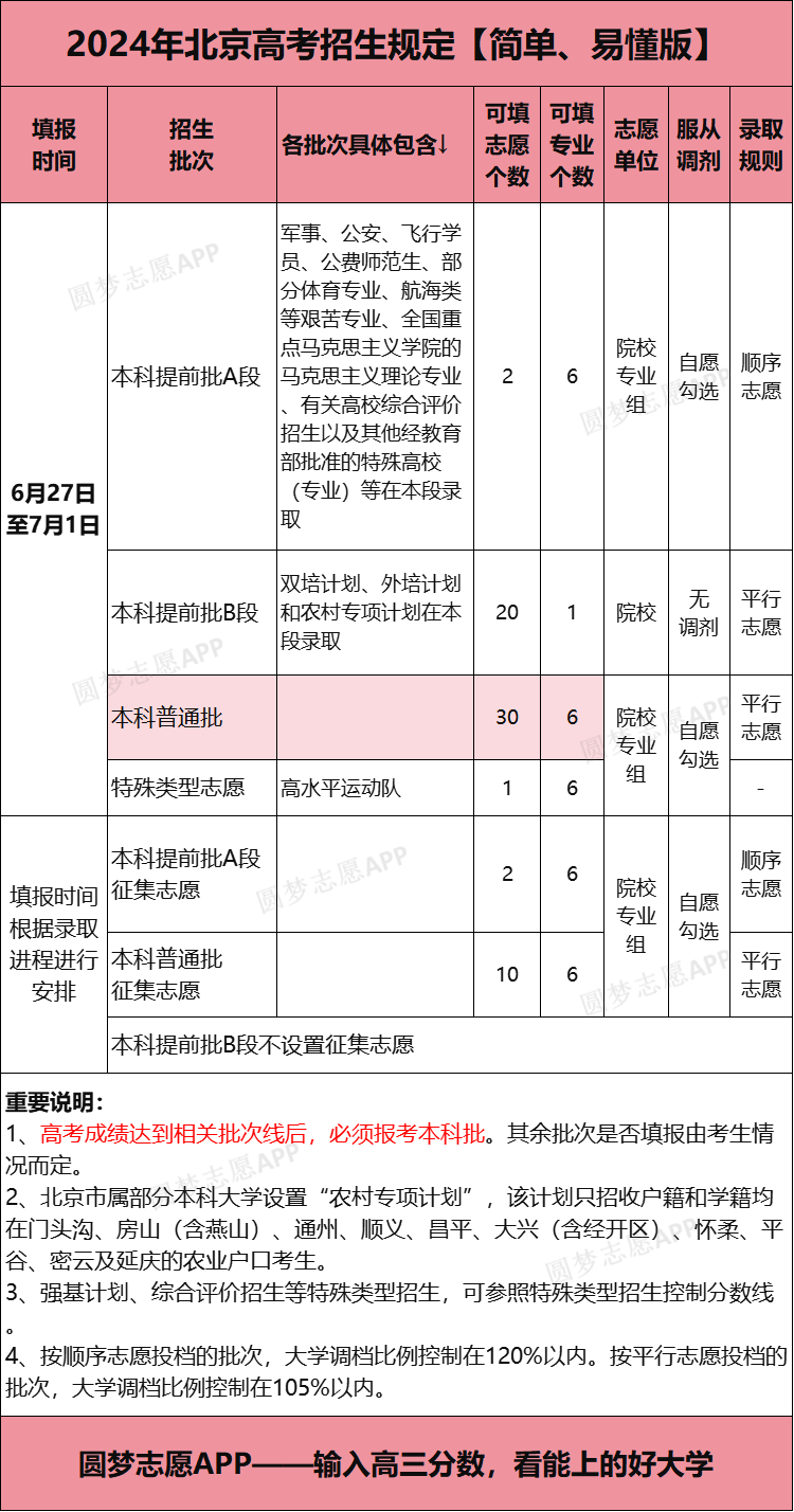 本科普通批:设30个平行志愿,每个志愿为1个院校专业组,每个院校专业组内可填报6个专业及是否服从专业调剂。这是本科招生的核心批次,汇聚了众多高校的各类专业,是考生志愿选择的重点。