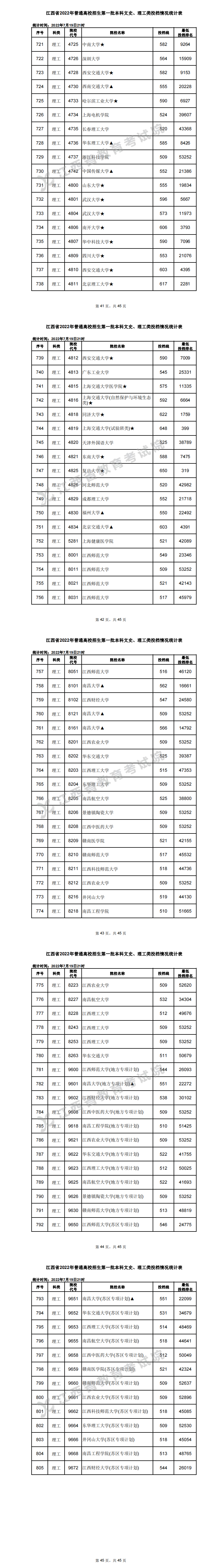 7月20日,江西省教育考试院公布江西省2022年普通高校招生第一批本科文史、理工类投档情况。