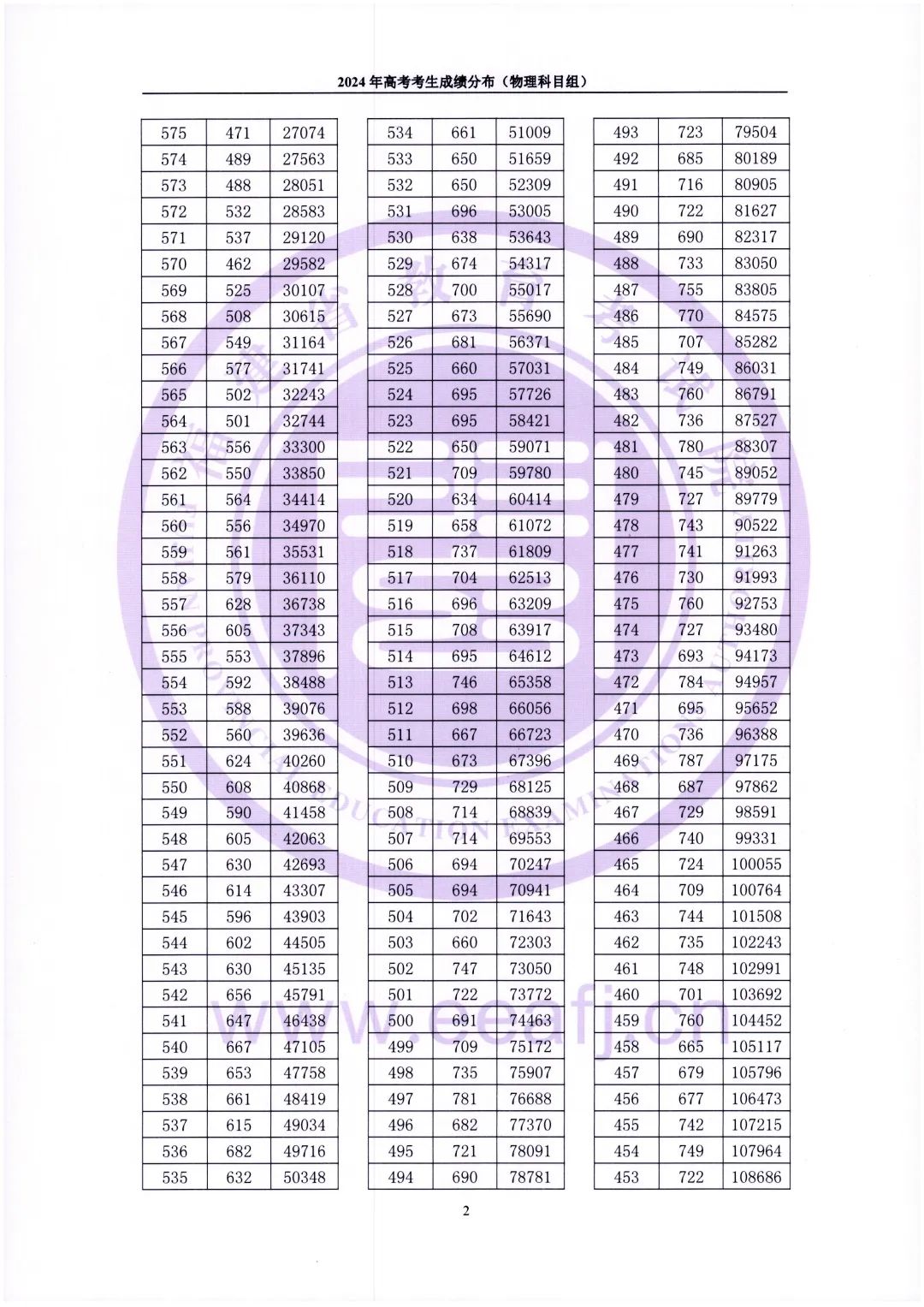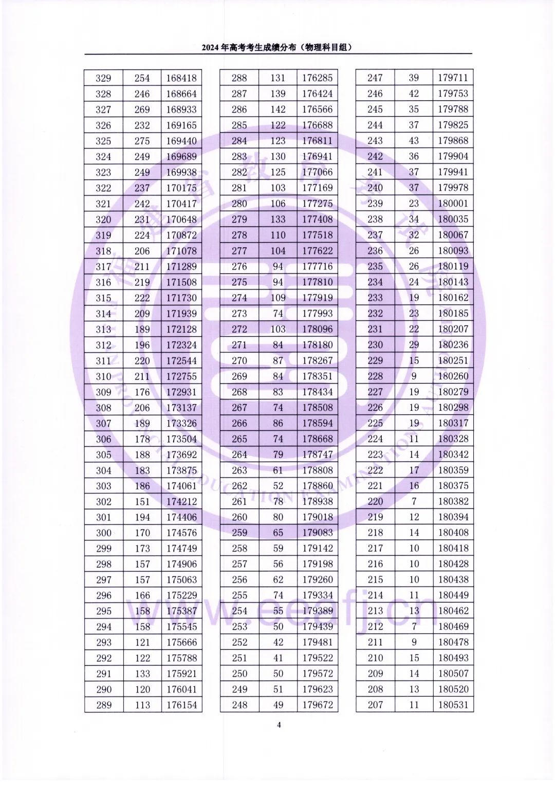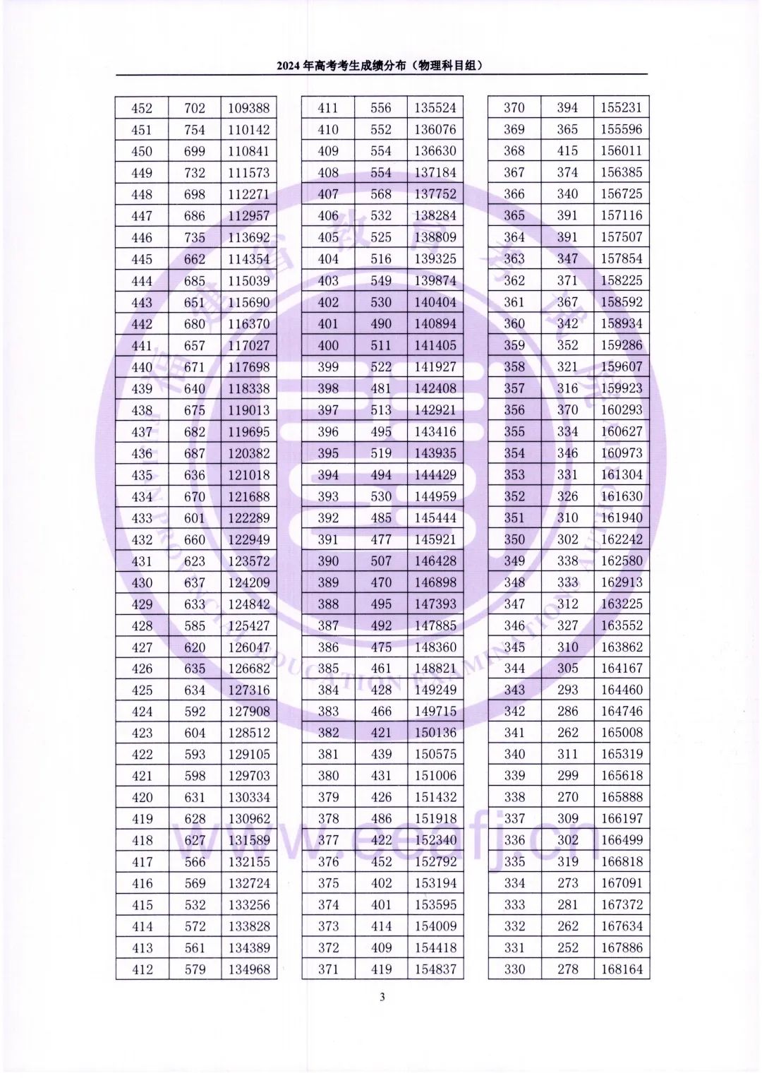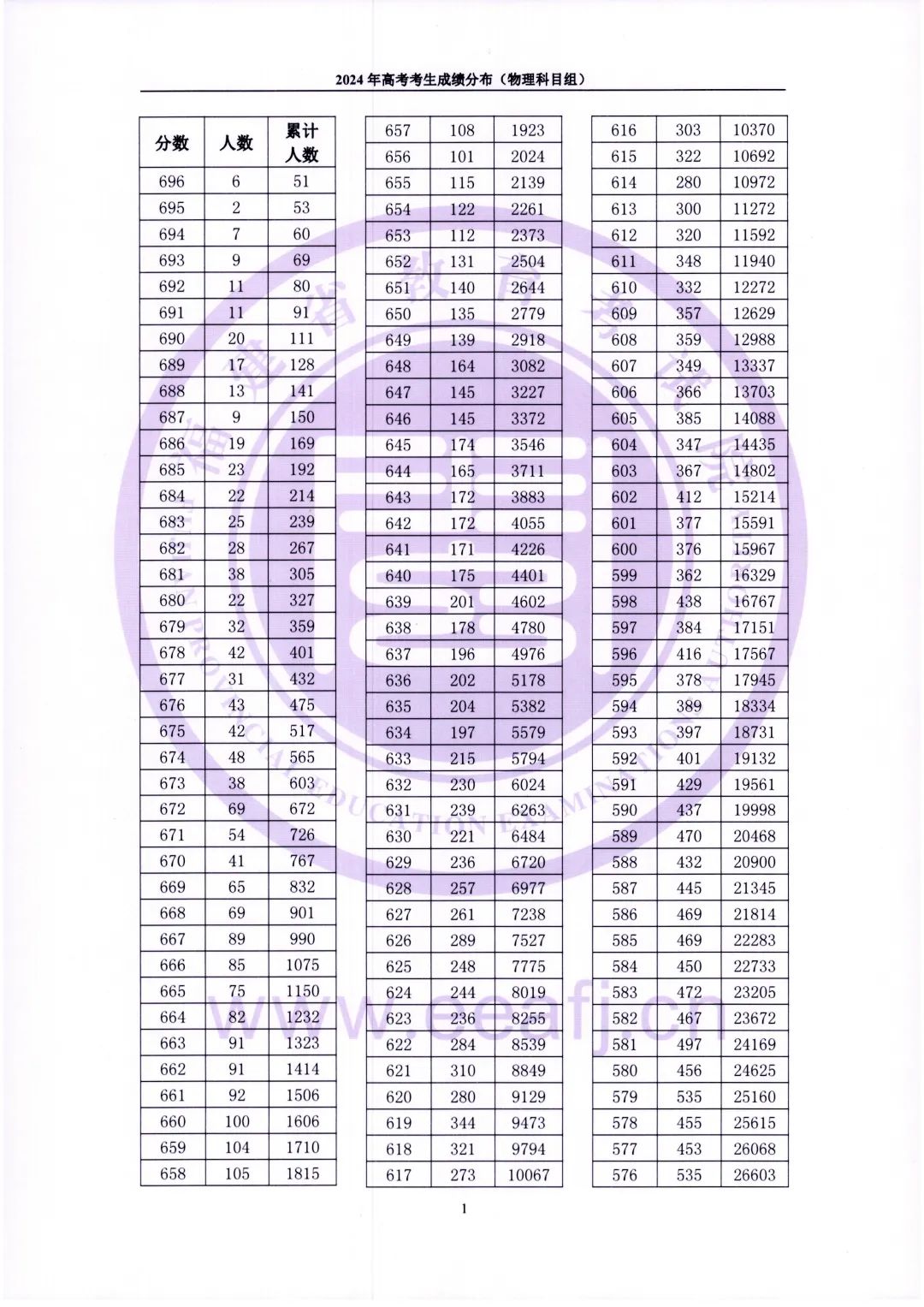 二、2024福建物理类高考一分一段表