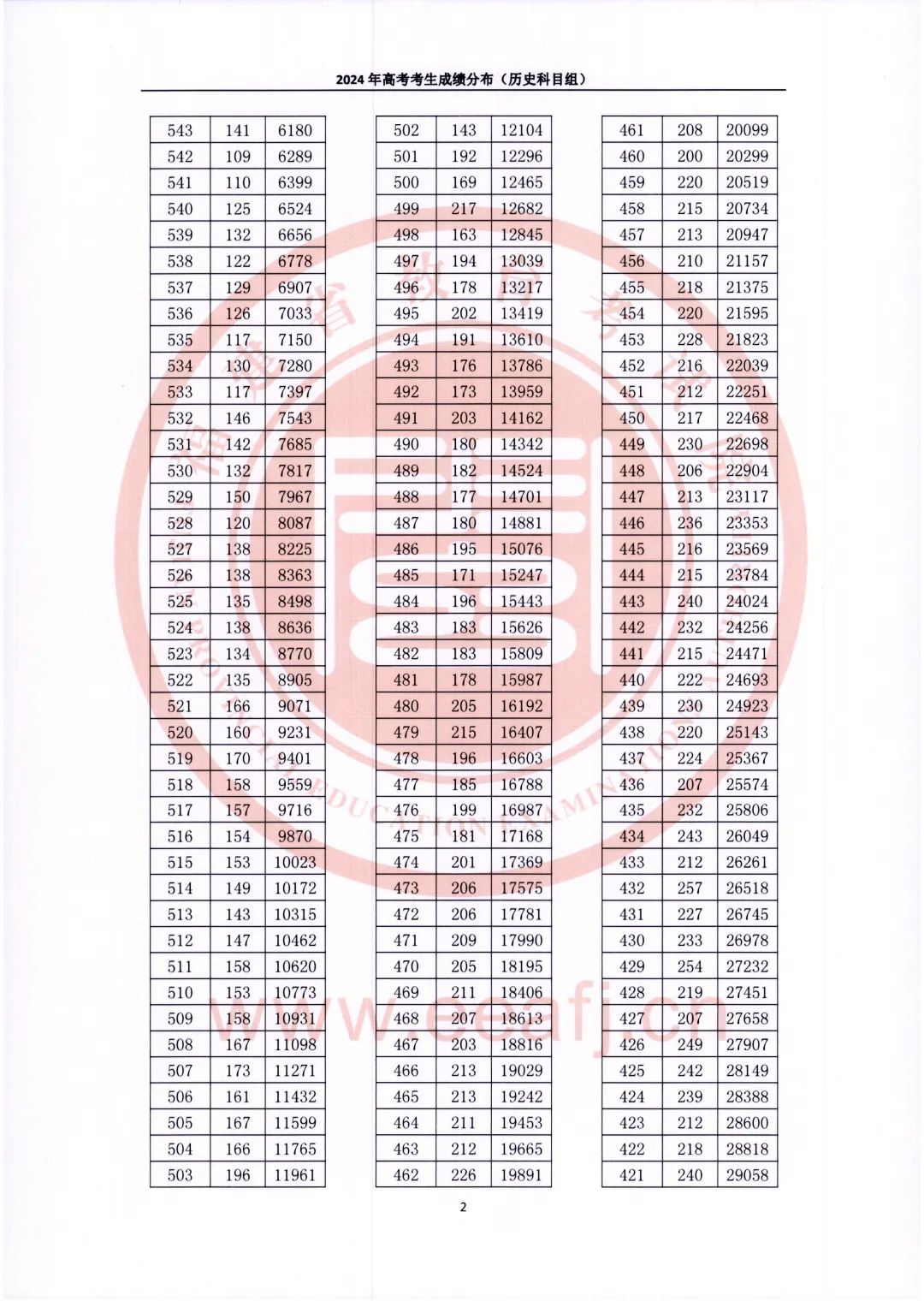 一、2024福建历史类高考一分一段表