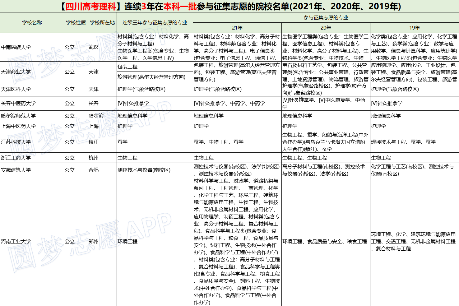 另外,编者在这里整理了连续三年\两年在四川省进行征集志愿的大学高校名单及专业详情,供大家参考了解: