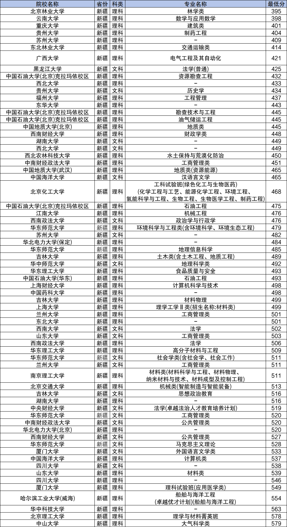 下面是2024年新疆高校专项计划录取分数线一览表(滑动查看):