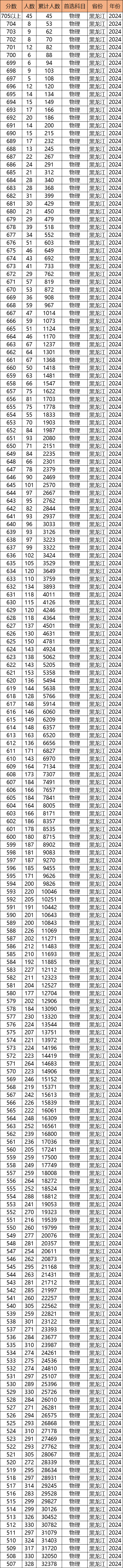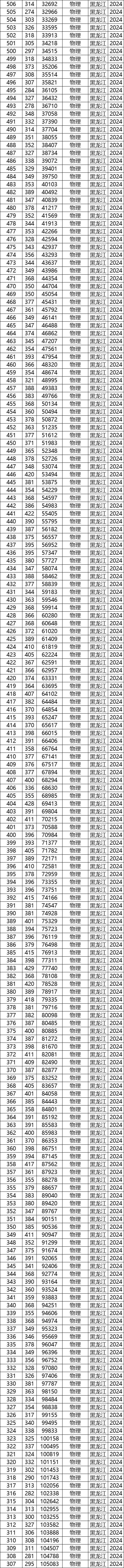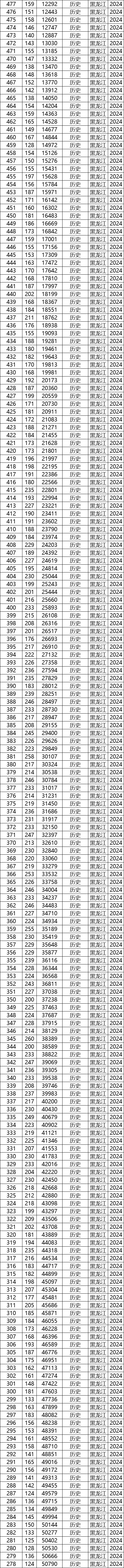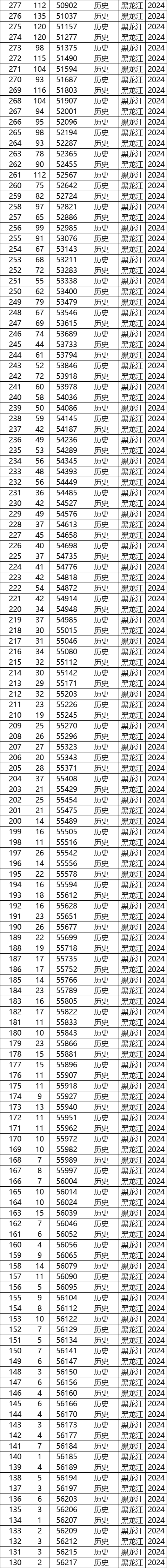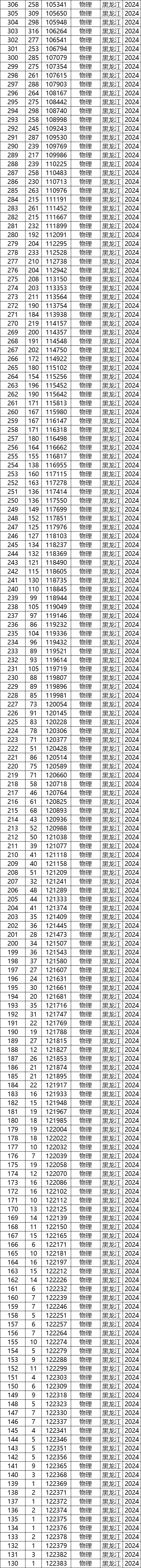 一、2024年黑龙江高考排名一览表