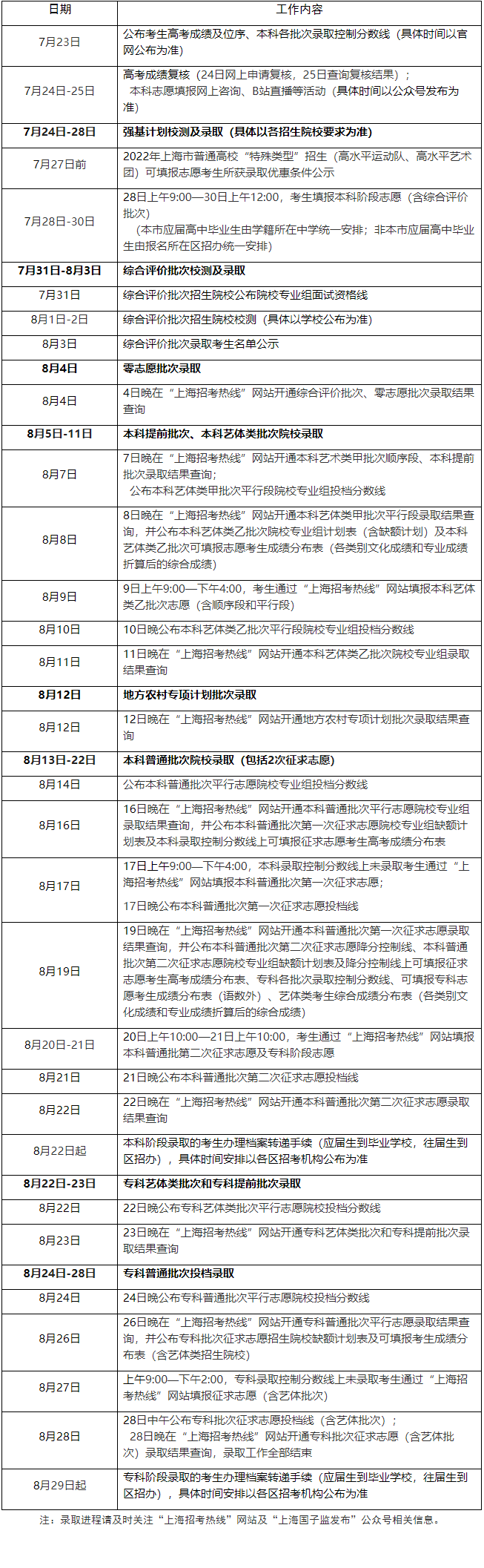 下面是2023年高考上海招生录取时间安排表(仅供参考):