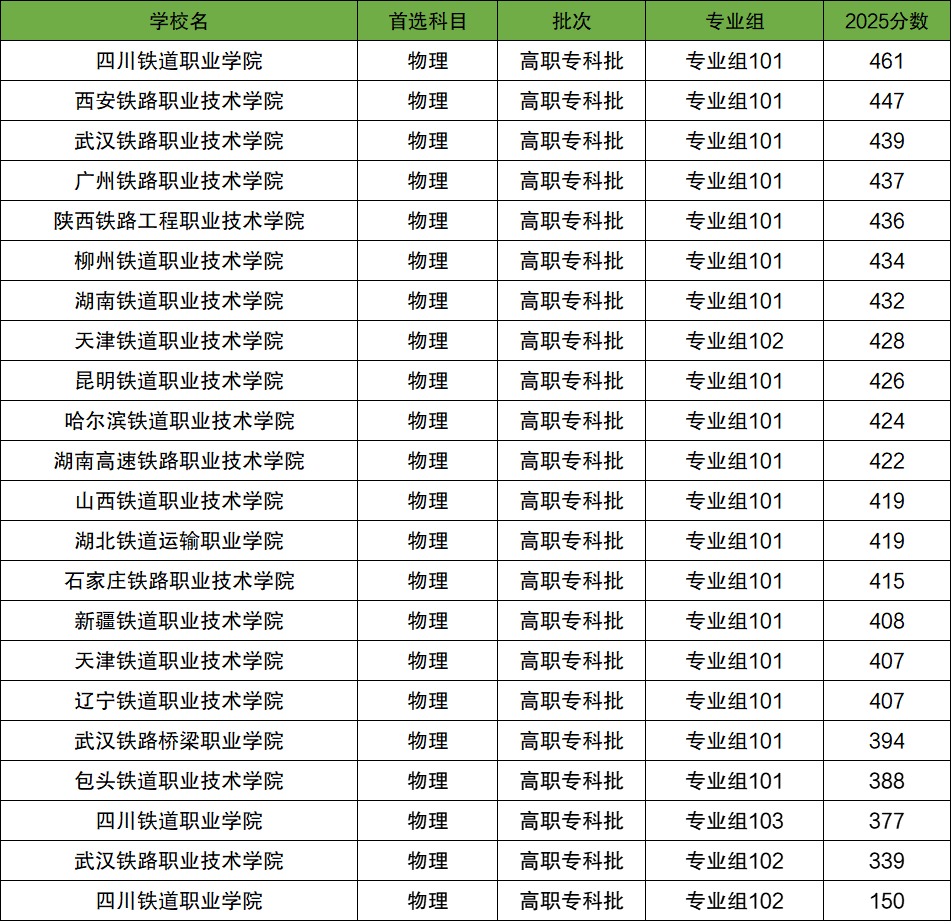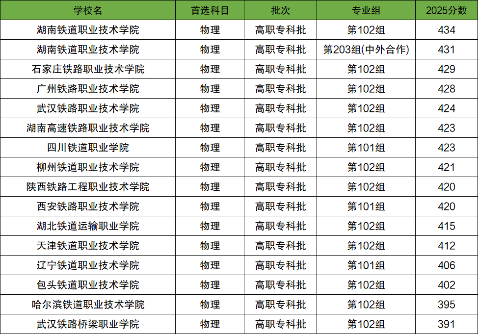 一、2025考铁路专科学校要多少分录取?