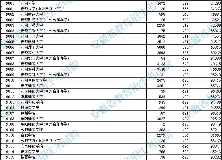 二、2022年安徽二本大学录取分数线