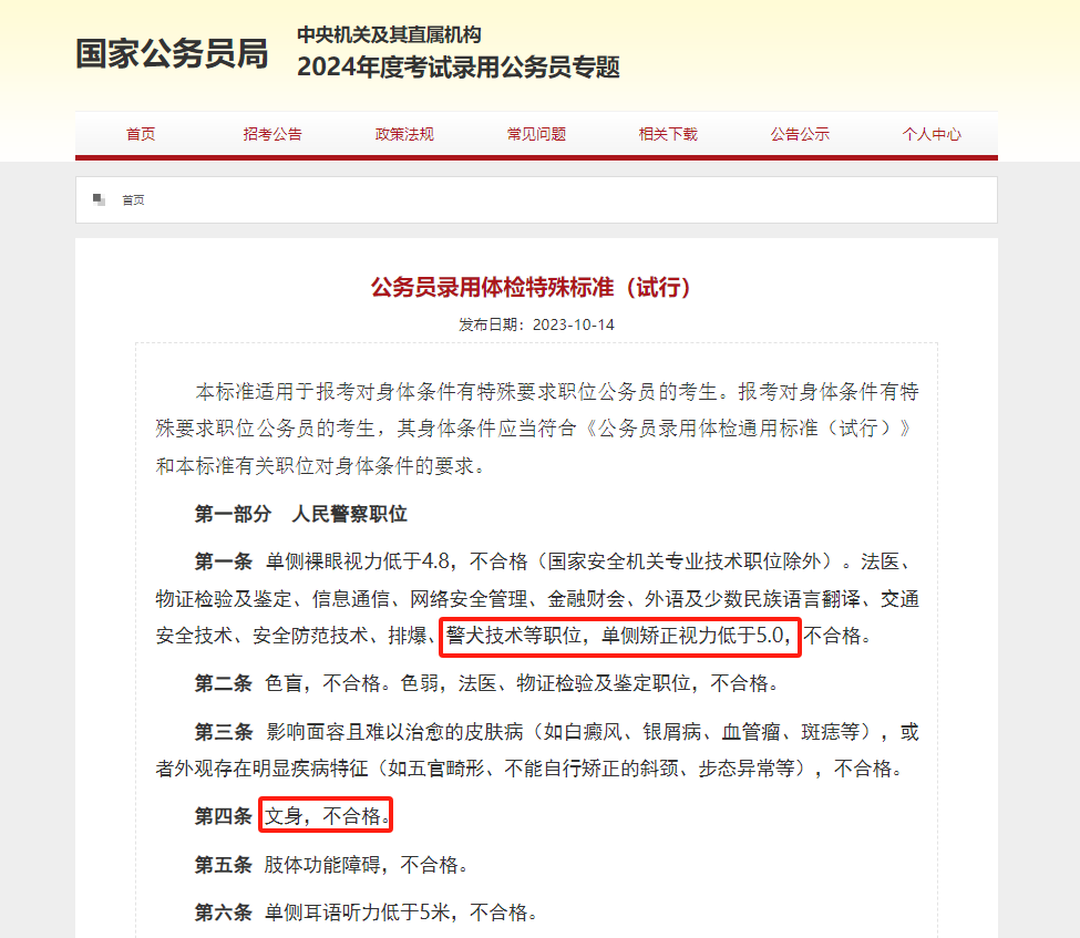 2)人民警察岗位是不允许有文身的。虽然有的文身可以洗掉,但不一定能完全洗干净,可能会影响入职体检。