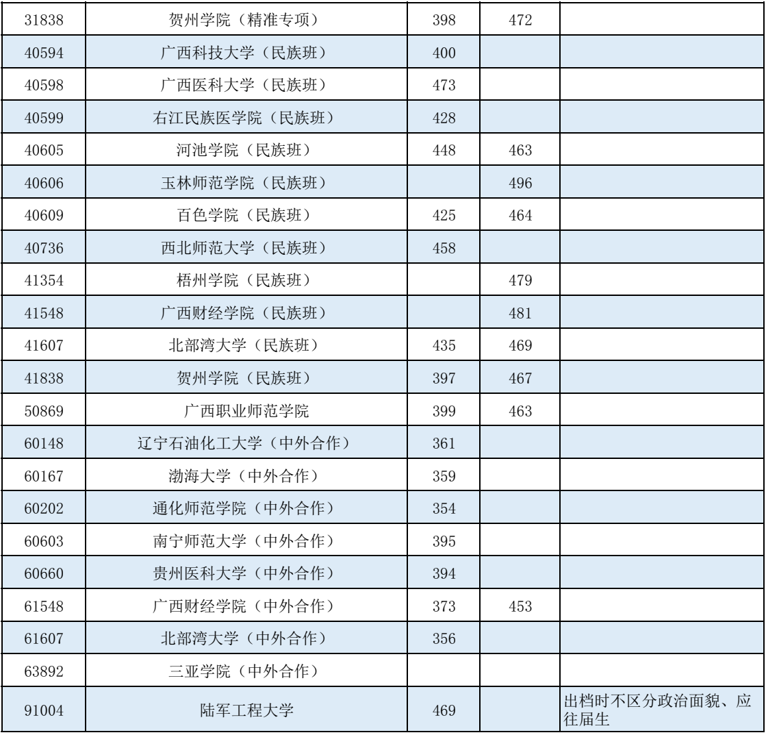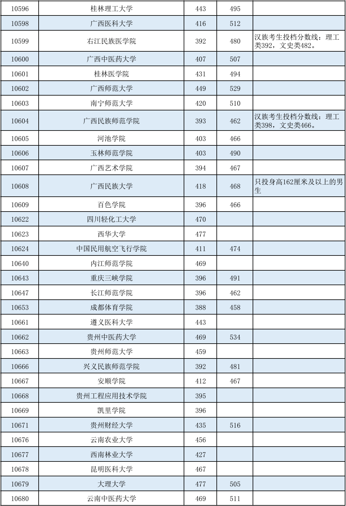 1.右江民族医学院、广西民族师范学院、大连民族大学对少数民族考生投档比例有要求,按学校要求进行投档。