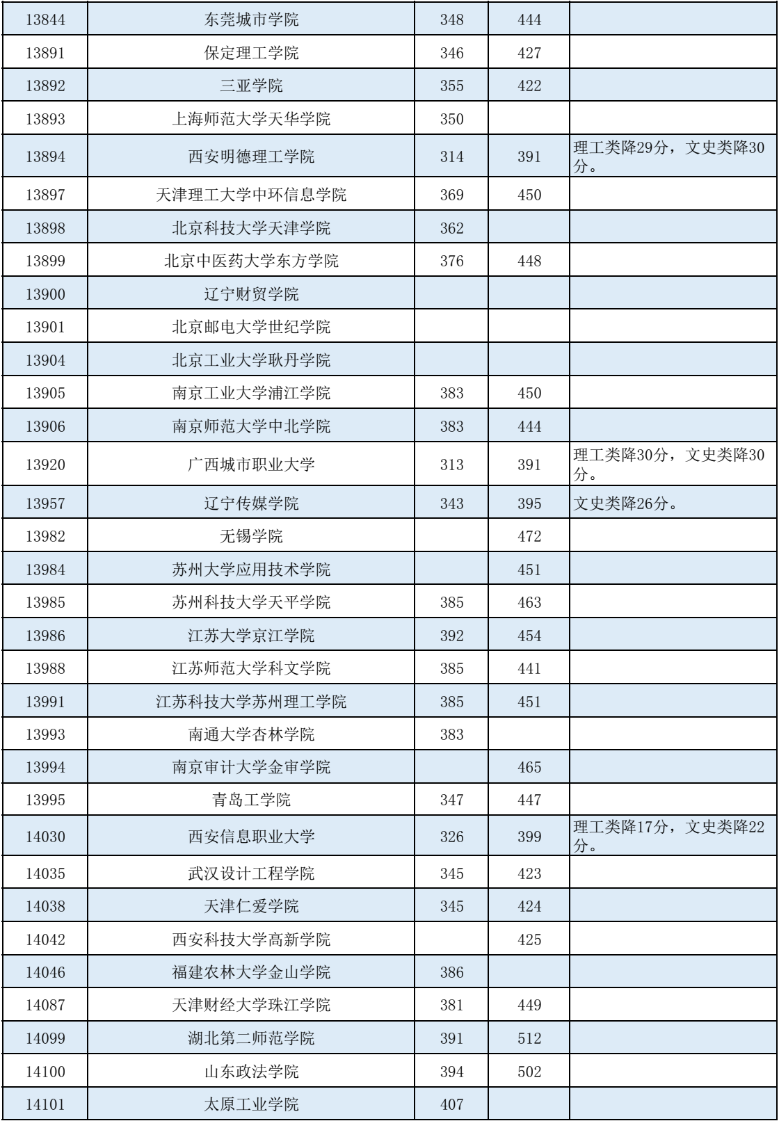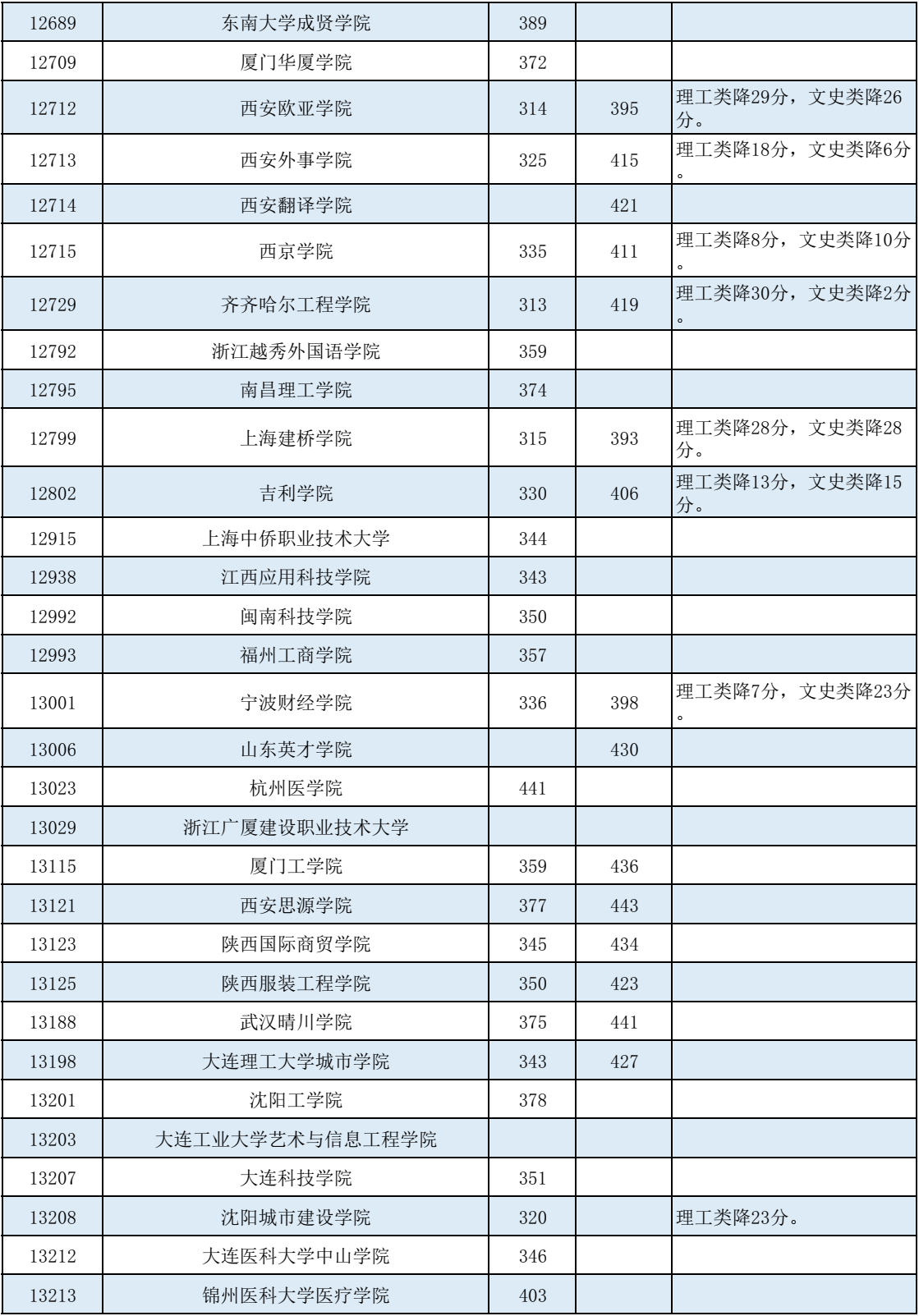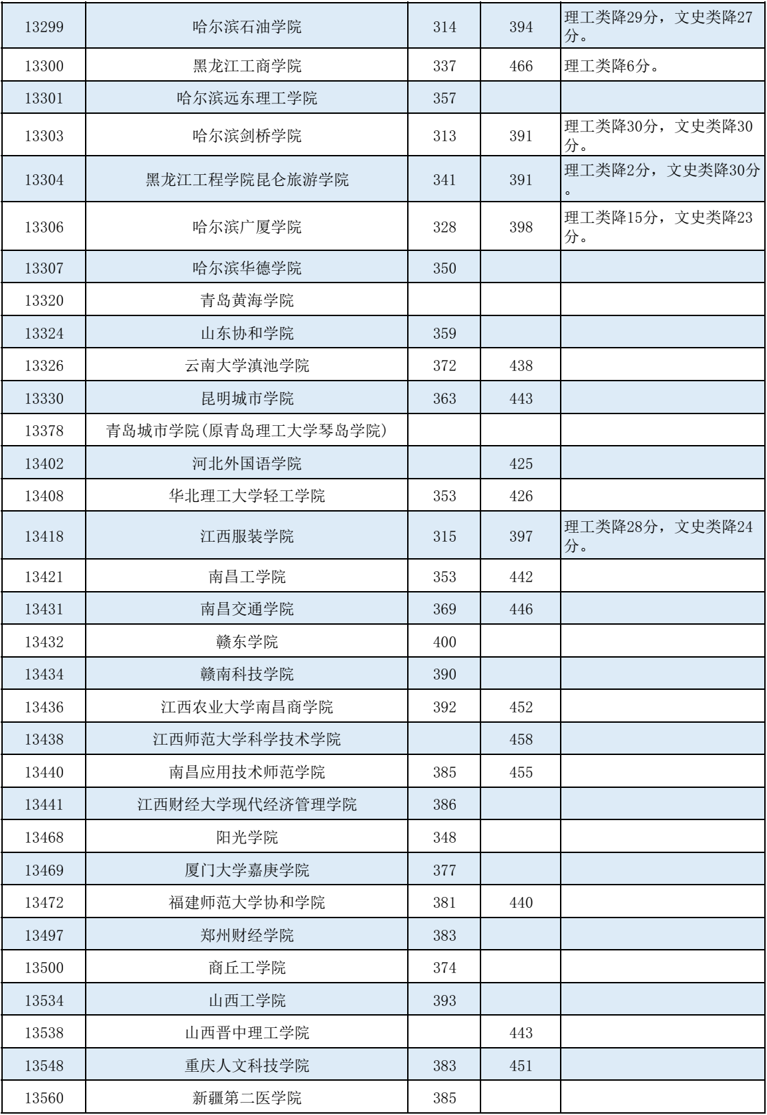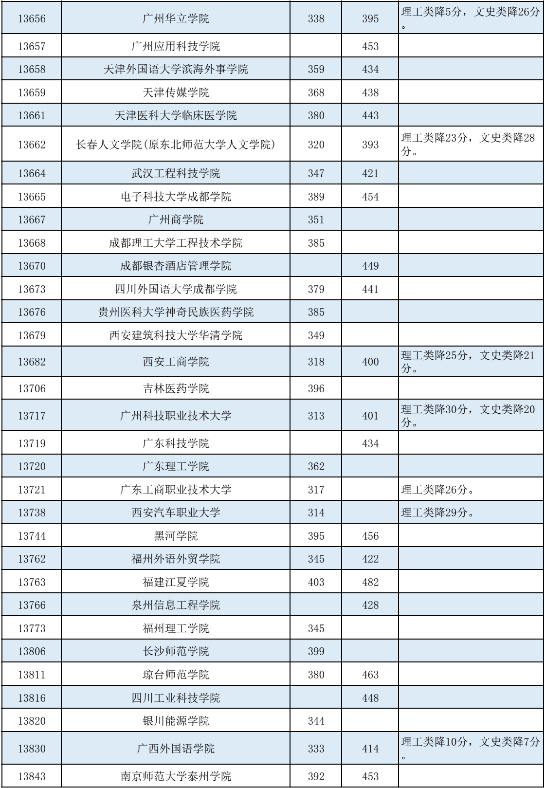 2.表中空白处表示无相应科类招生计划或无出档考生。