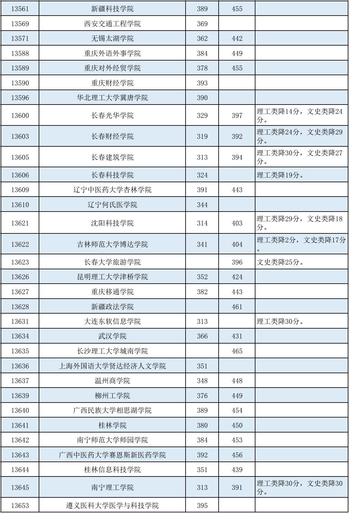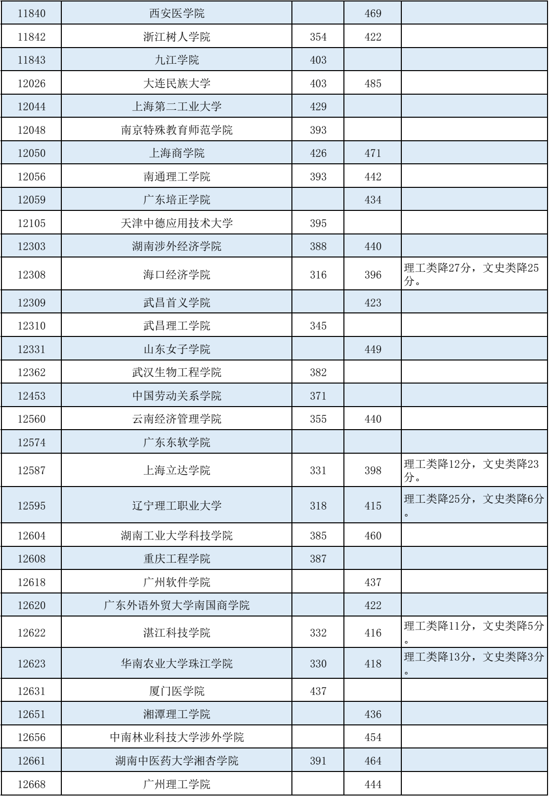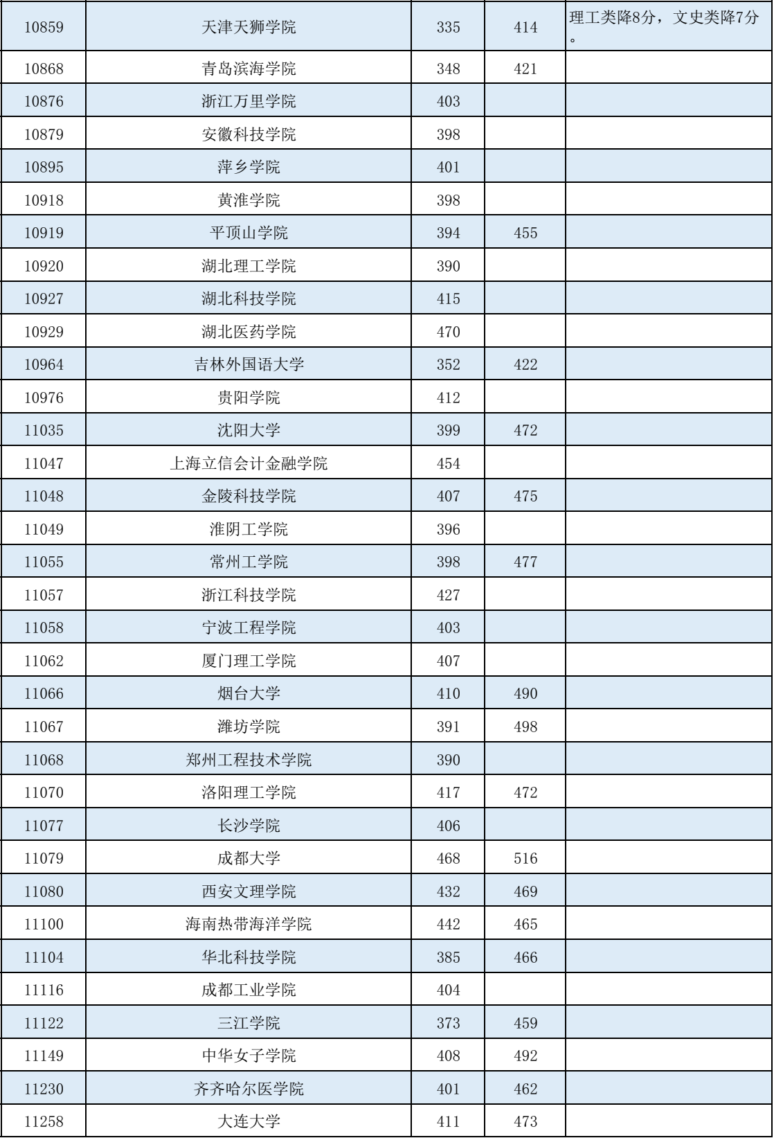 2.表中空白处表示无相应科类招生计划或无出档考生。