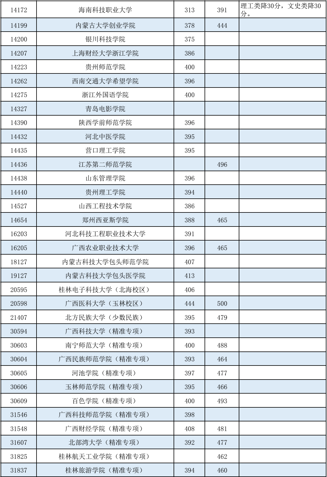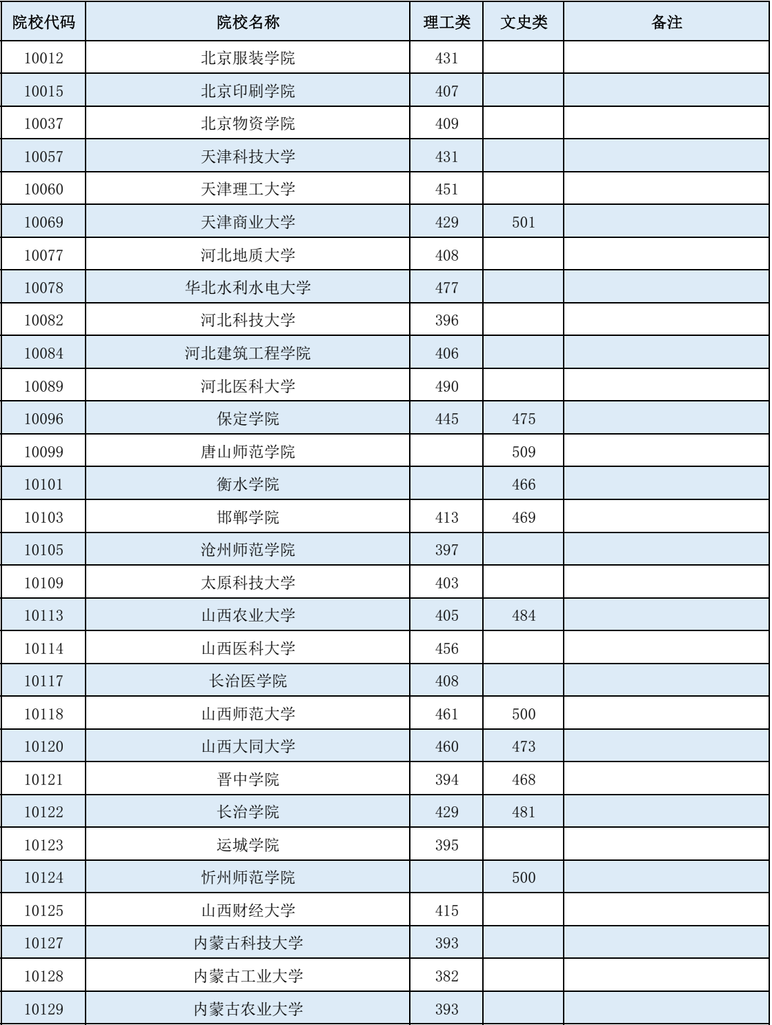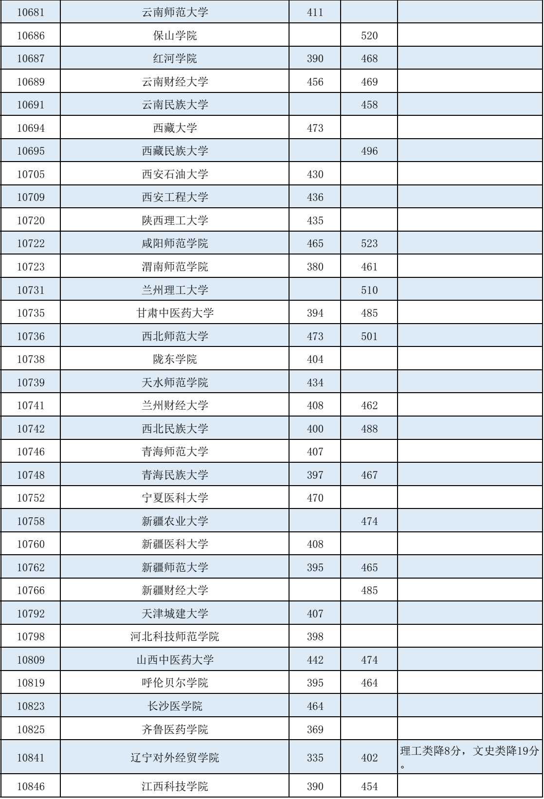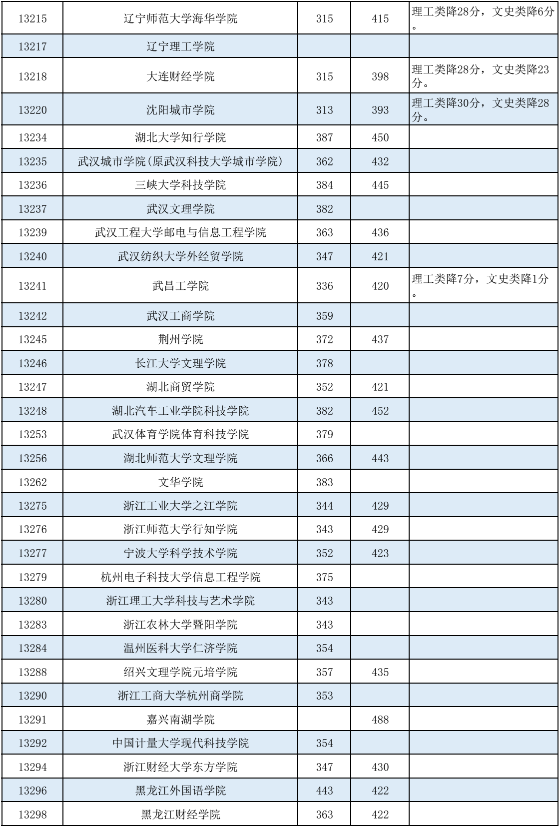 2.表中空白处表示无相应科类招生计划或无出档考生。