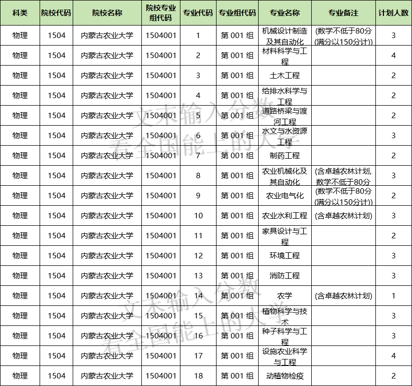 1、2024年内蒙古农业大学物理科目招生人数共计63人。