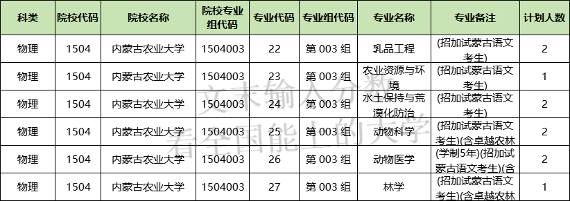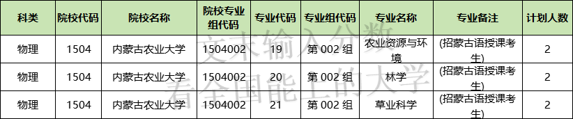 2、2024年内蒙古农业大学无在历史科目招生计划。