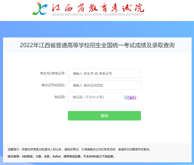 录取结果查询网址及入口:http://gkcf.jxedu.gov.cn/