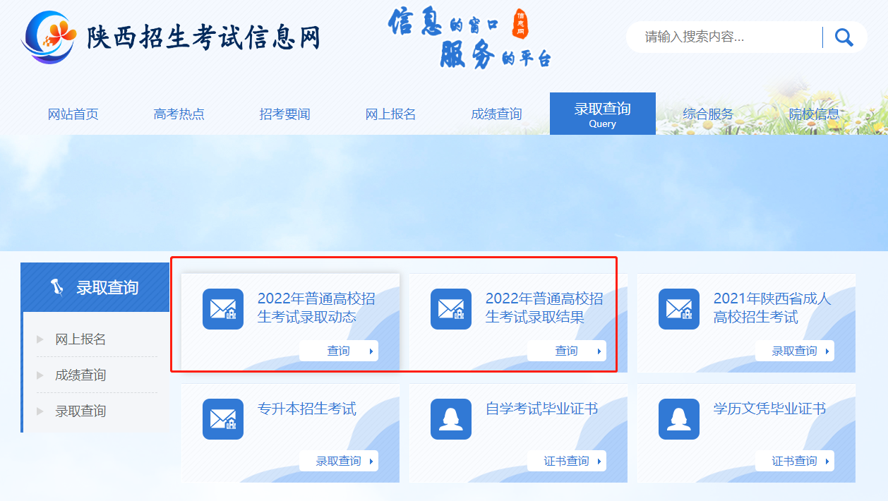 录取结果查询网址及入口:https://gkpt.sxkszx.cn/gkstuweb2022/