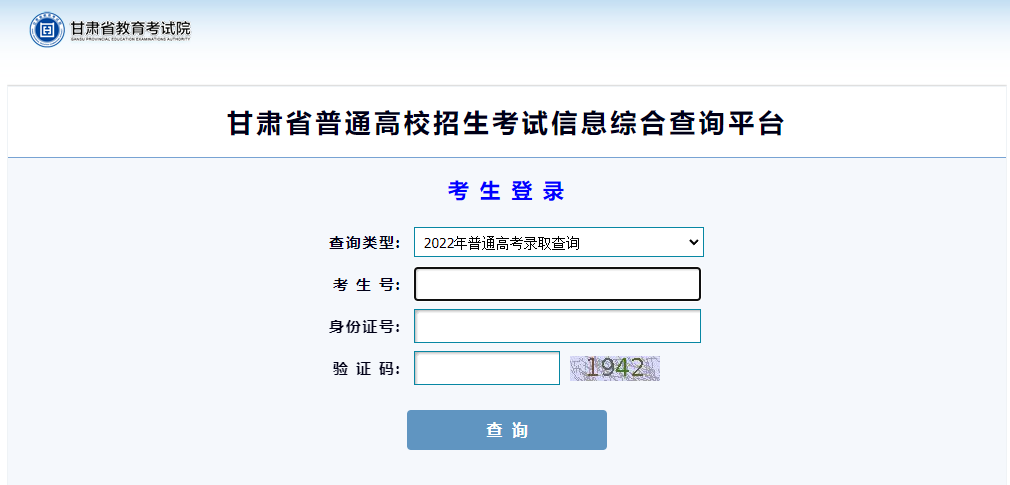 录取结果查询网址及入口:http://gaokao.ganseea.cn/