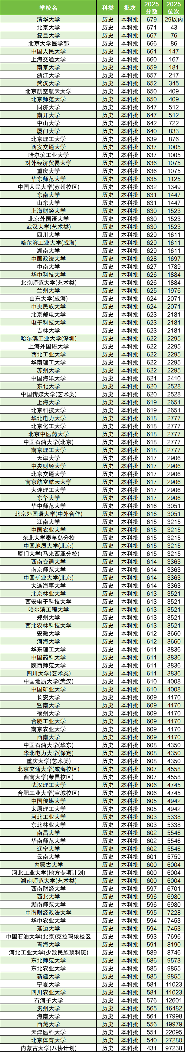 下面是纯211大学中历史类录取分数线最高的10所大学分数及位次详情: