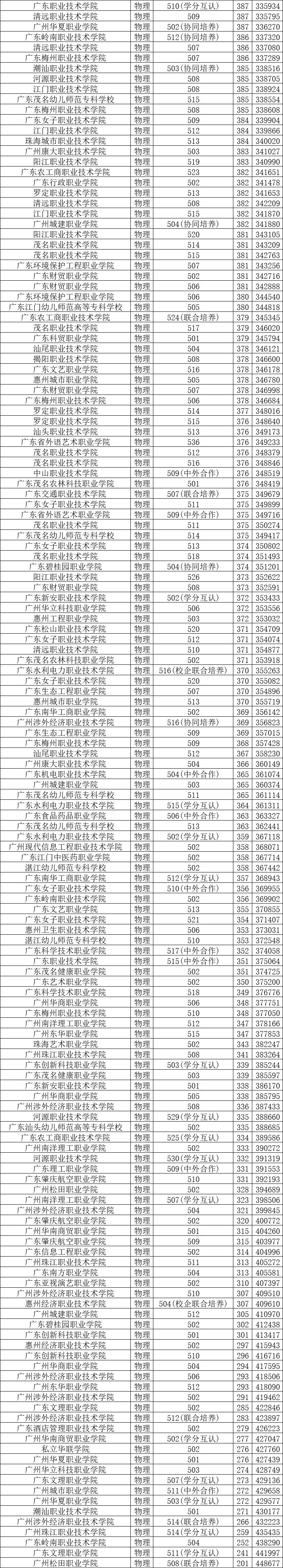 2024年广东物理类大专院校录取分数线范围在201分~495分之间,广东历史类大专院校录取分数线范围在205分~495分之间。