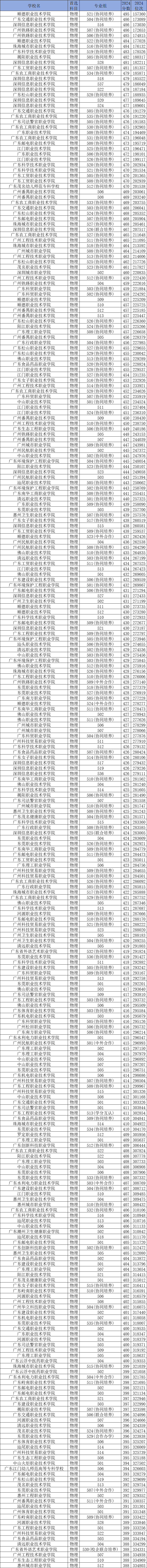 以下为2024年广东物理类所有大专院校分数线(可滑动查看):