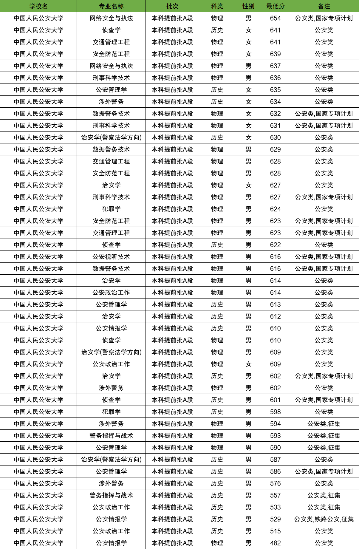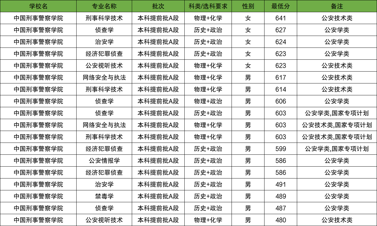 公安学类(包含侦查学、禁毒学、经济犯罪侦查专业):男生最低分543分,女生最低分595分;
