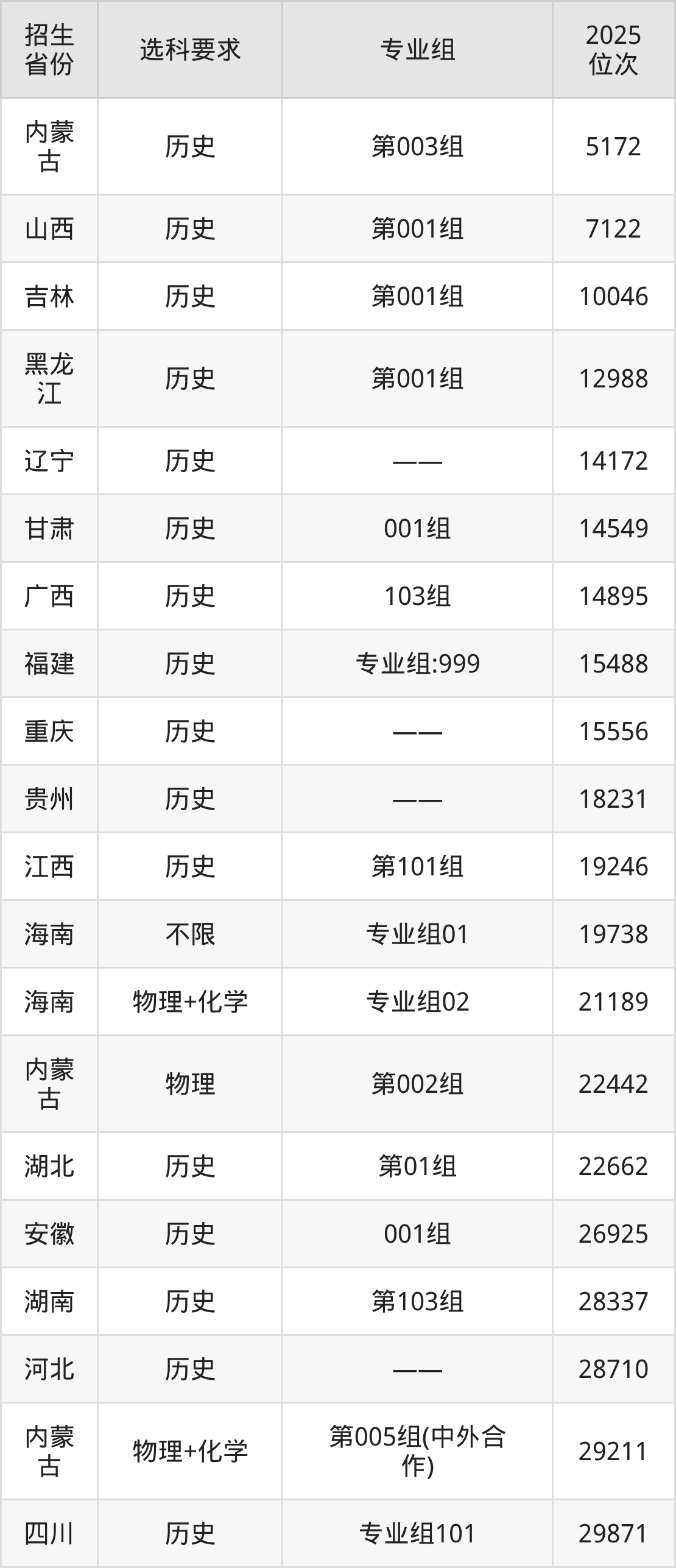 湖南工程学院2025年在全国各省的位次差异较大,最高位次是5172位(内蒙古历史类)、最低位次是242883位(山东)。各省具体位次请看下图: