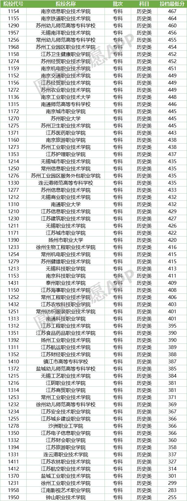 3、2022年江苏省历史类分数最高的专科大学为南京信息职业技术学院,最低录取分数线为467分,其次为南京铁道职业技术学院,最低录取分数线为464分