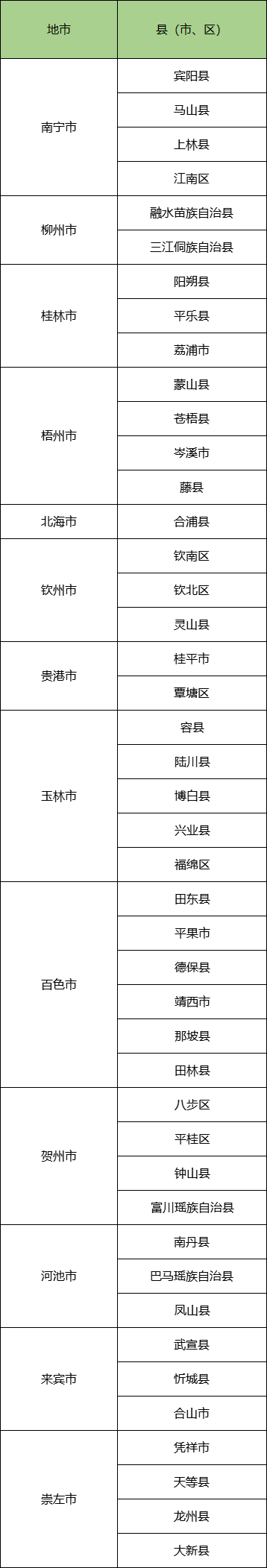 下面是2025广西公费定向师范生的定向就业范围(含44个县、市、区):