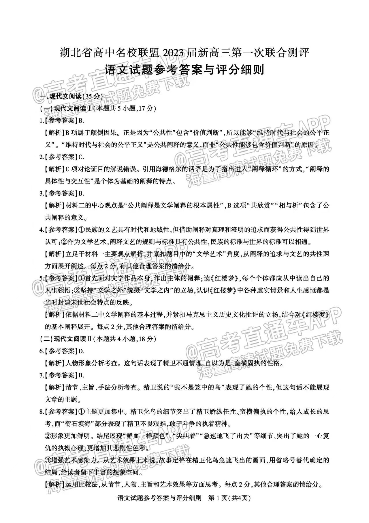 2023届湖北新高三摸底考试在8月11日上午举行,考完试之后,同学们应该很想知道自己各科的试题以及答案,对自己的成绩有一个预估后,从而更加明确努力的方向。在本文,小编整理了2023届湖北新高三摸底百校联考语文试题及答案汇总,以供同学们参考。