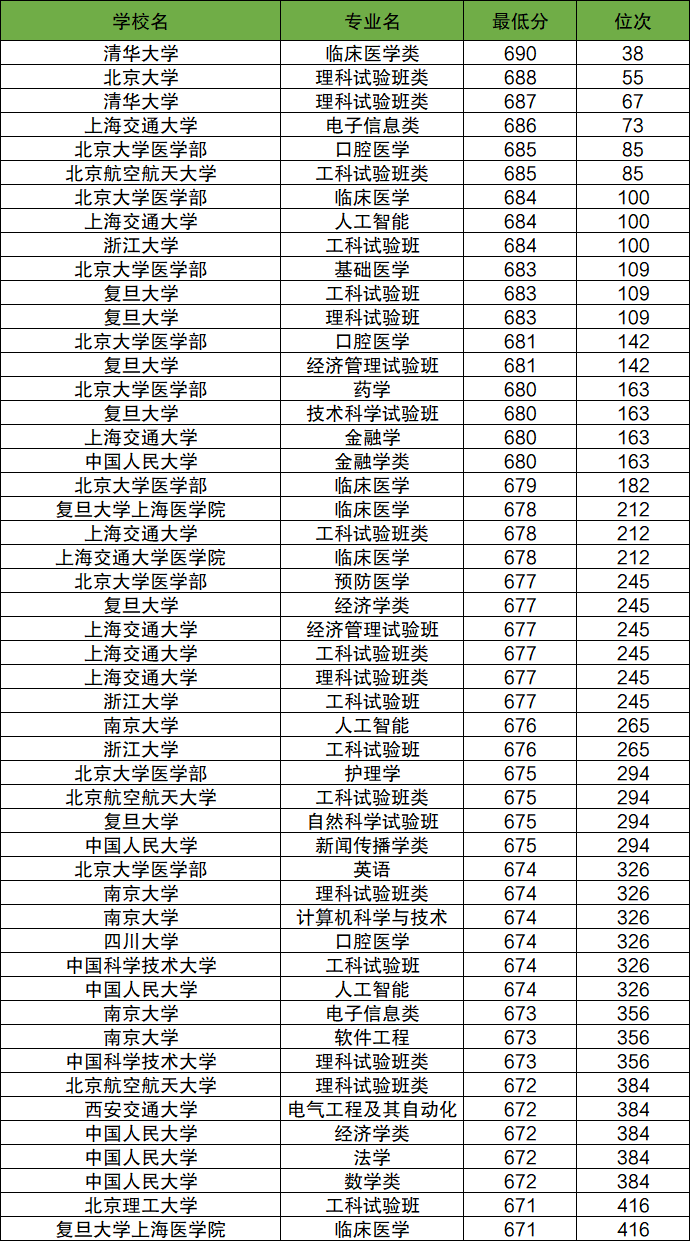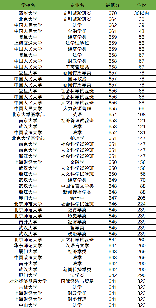 下表为部分投档线数据,篇幅有限无法为大家一一整理