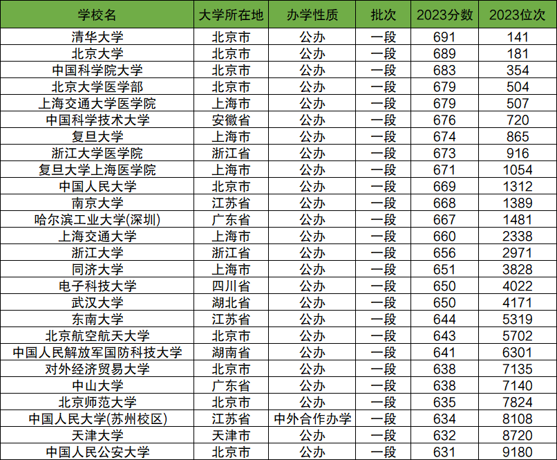 | 学校名 | 大学所在地 | 批次 | 2023 分数 |