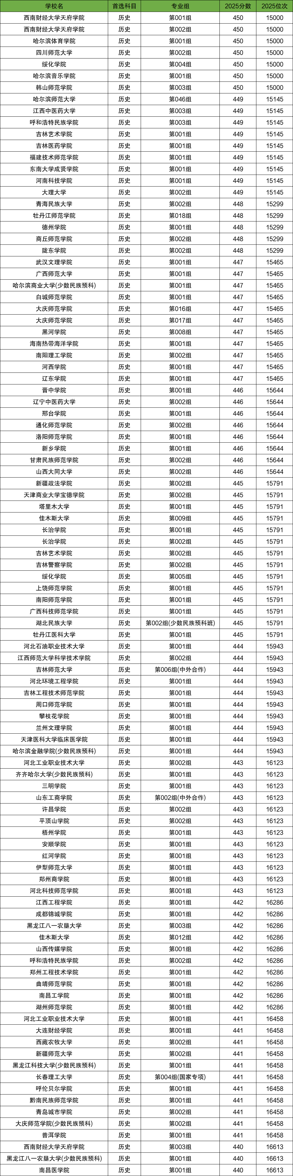 从2025年全国二本院校在黑龙江历史类录取分数线位于400-450分的统计表来看,收分最低二本大学有太原学院第001组(边防军人子女预科班)404分,宁夏理工学院第001组405分,收分较高的二本大学有西南财经大学天府学院第001组450分,哈尔滨体育学院第001组450分等,具体如下表:(本文篇幅有限,仅列举分数前100院校专业组)